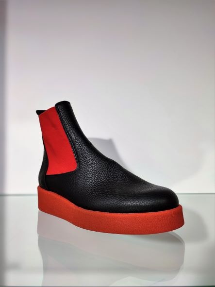 - cuir lisse bicolore Noir / élastiques et semelle hévéa rouge