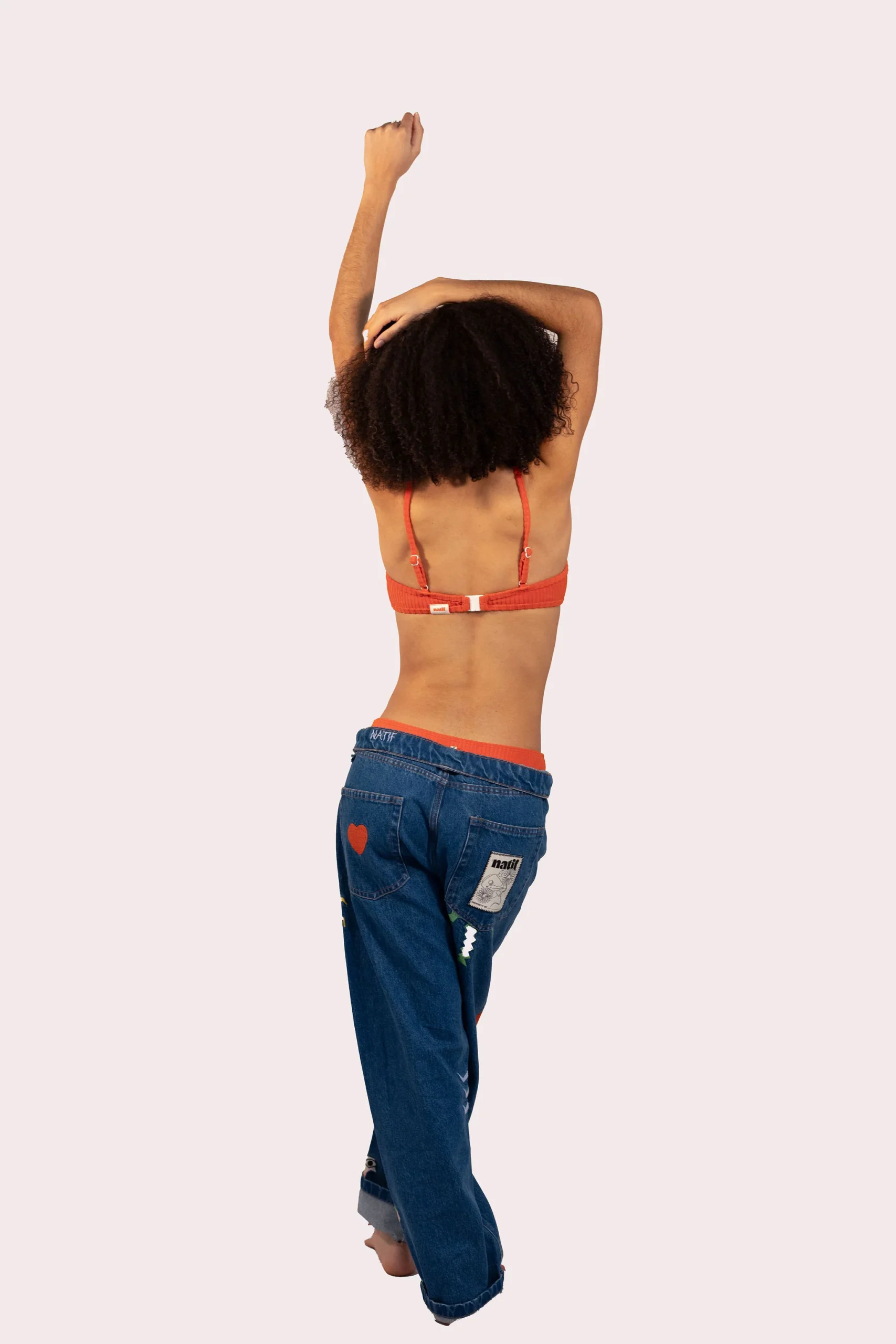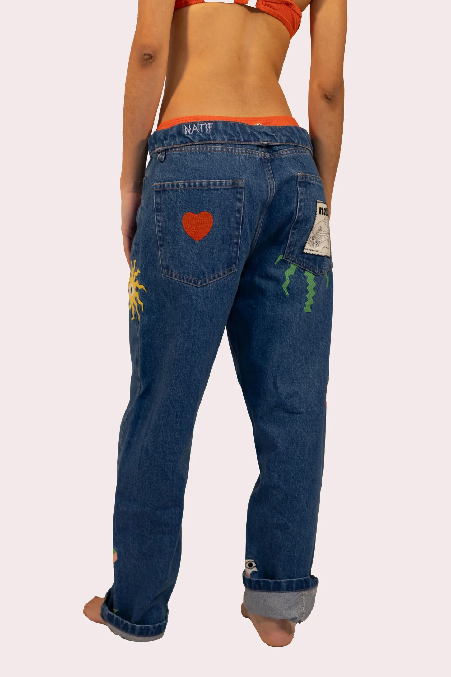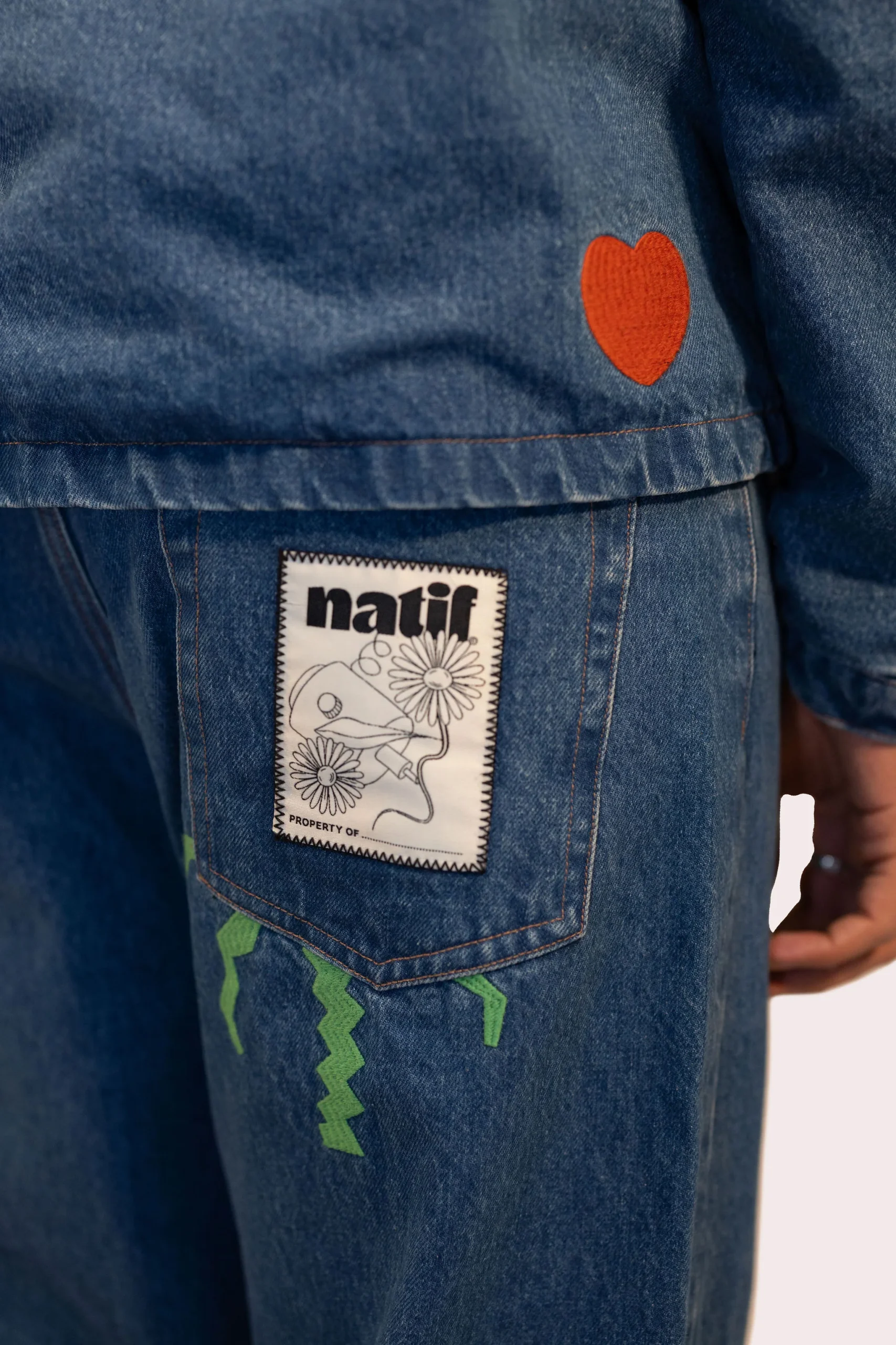Pensé pour ceux qui vivent en marge, s’expriment sans filtre et transforment chaque rue en catwalk. Ce baggy revisite les codes du streetwear avec des motifs tattoo exclusifs, des broderies contrastées et une coupe wide qui laisse respirer ton style. Matière Denim Broderie Tatoo Coton bio
