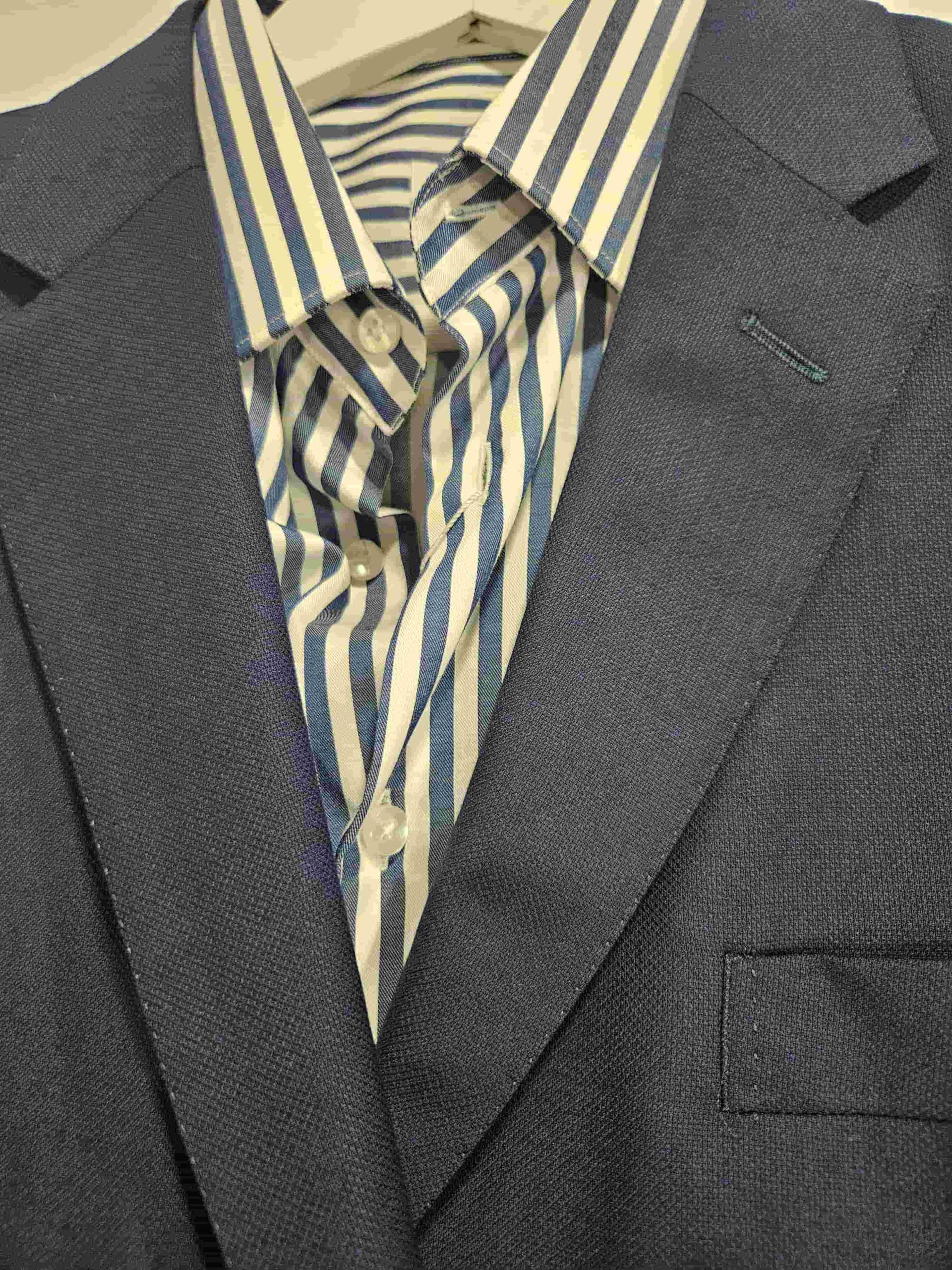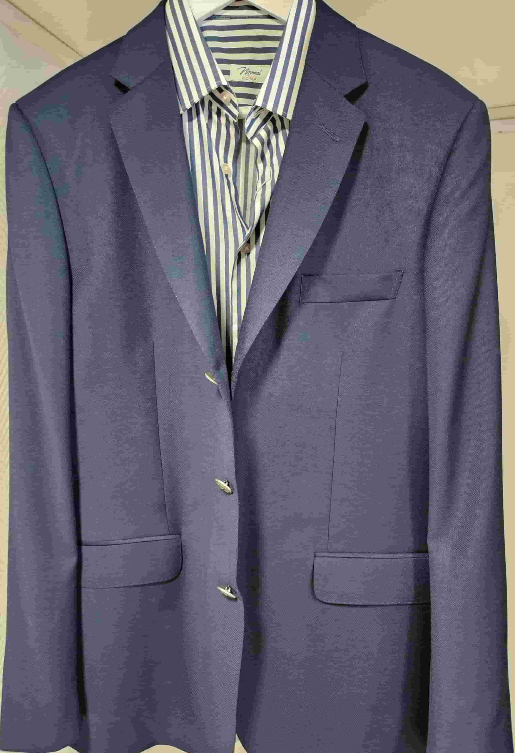 Blazer Bleu Marine en Laine Vierge – Élégance Moderne et Intemporelle Blazer bleu marine homme en 100% laine vierge S100, coupe droite, deux fentes au dos. Doublure viscose, boutons argentés à motif ancre. Fabrication haut de gamme au Portugal.