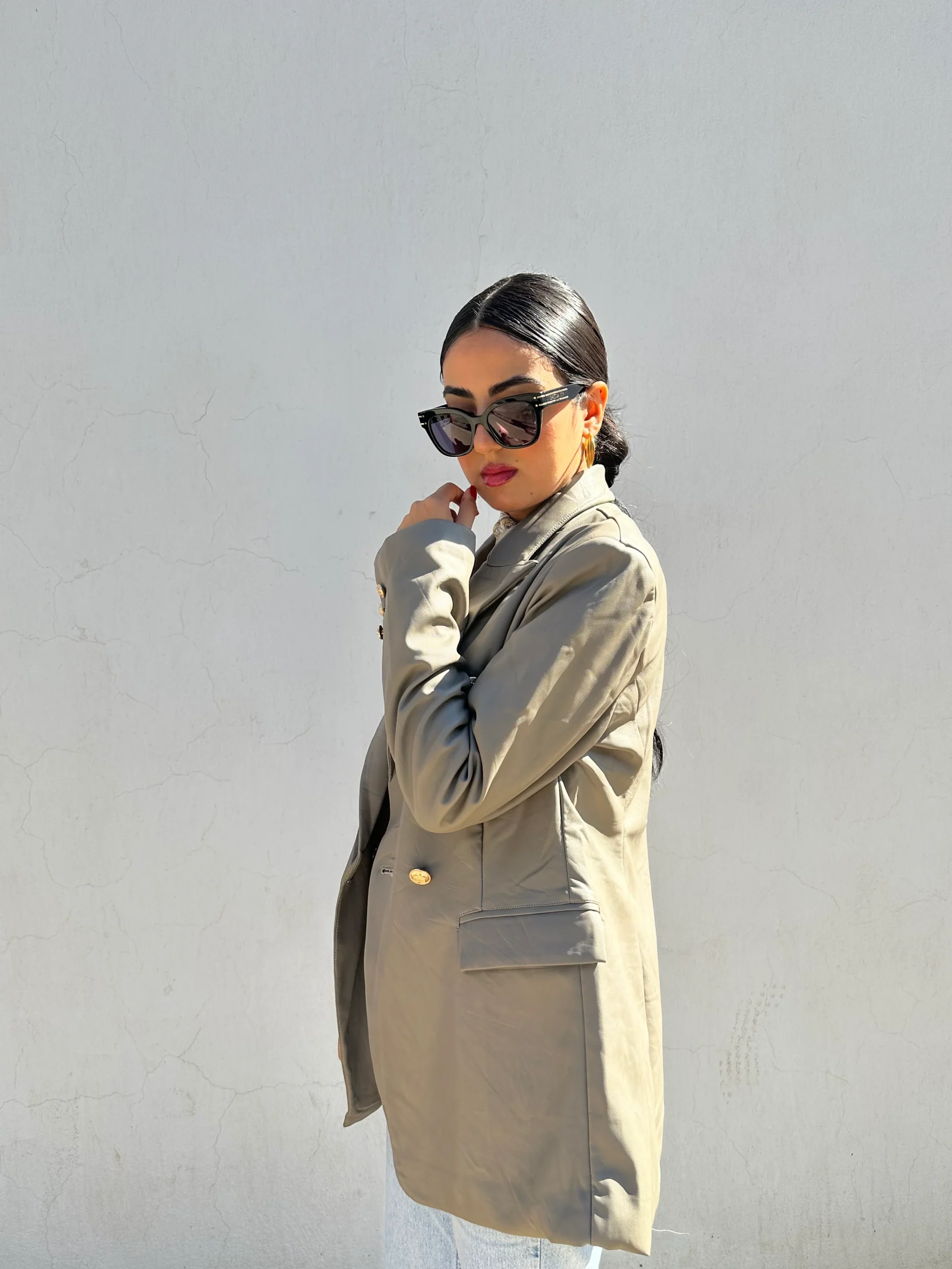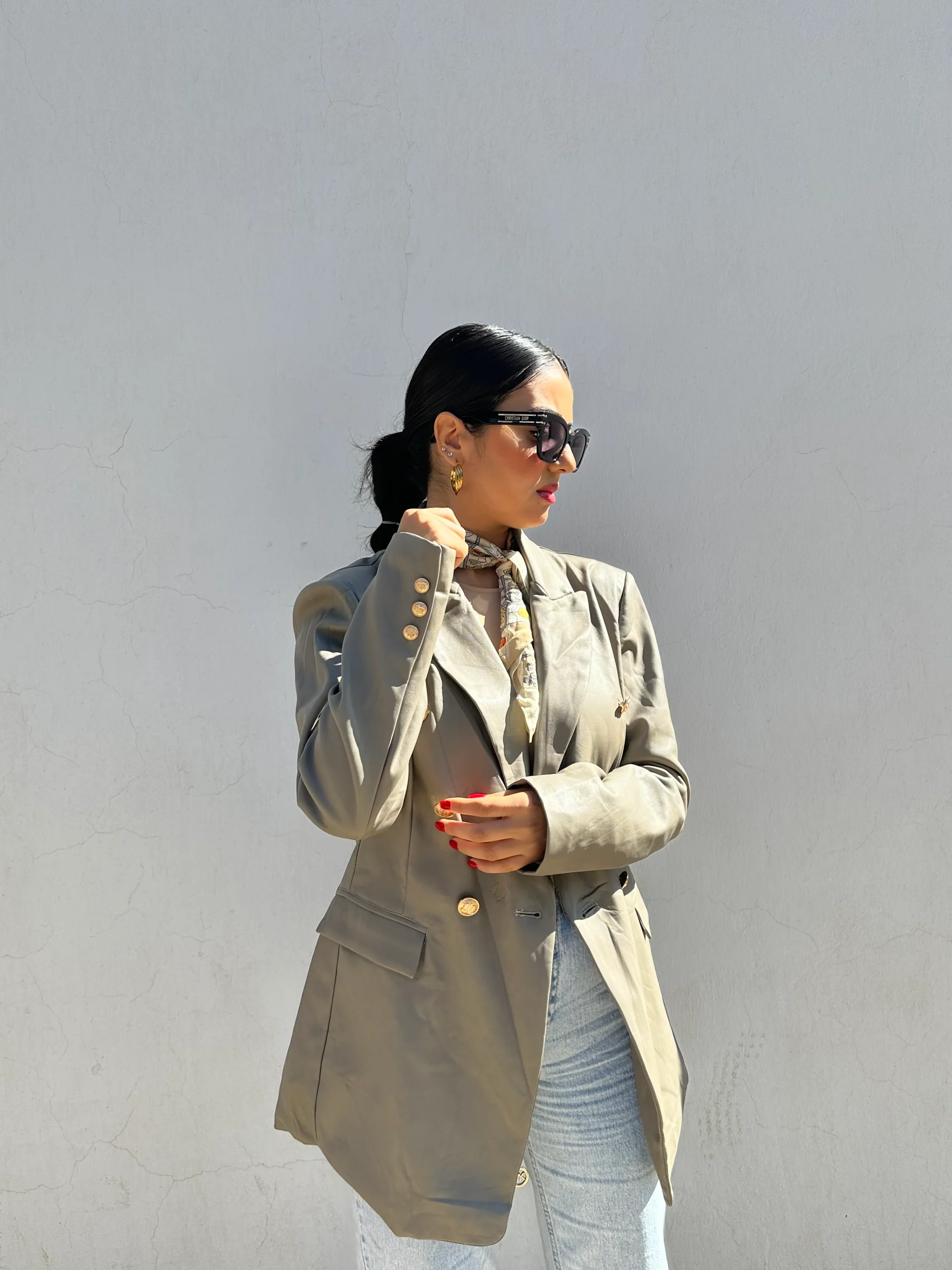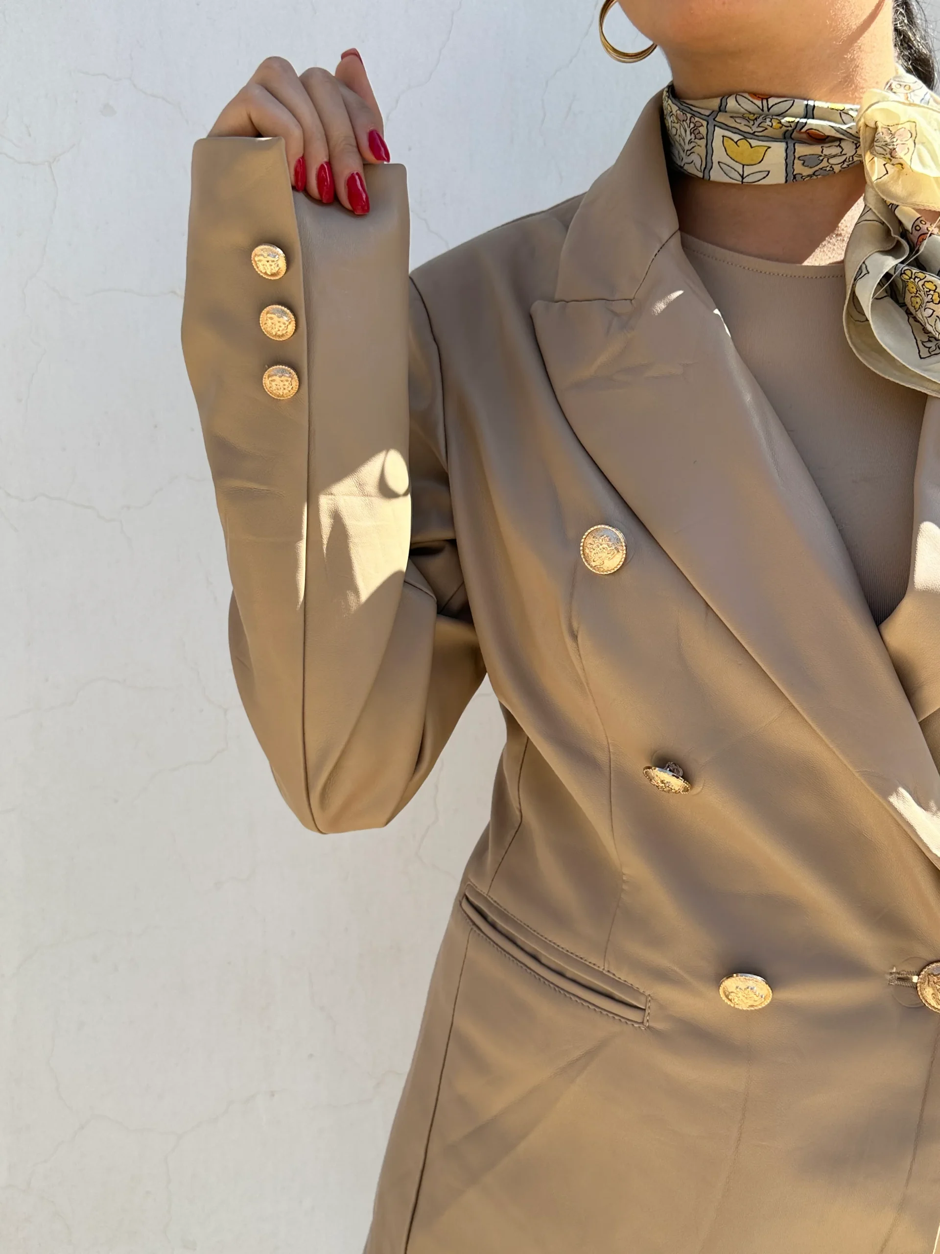 Blazer vintage effet cuir noir et boutons dorés pour femme