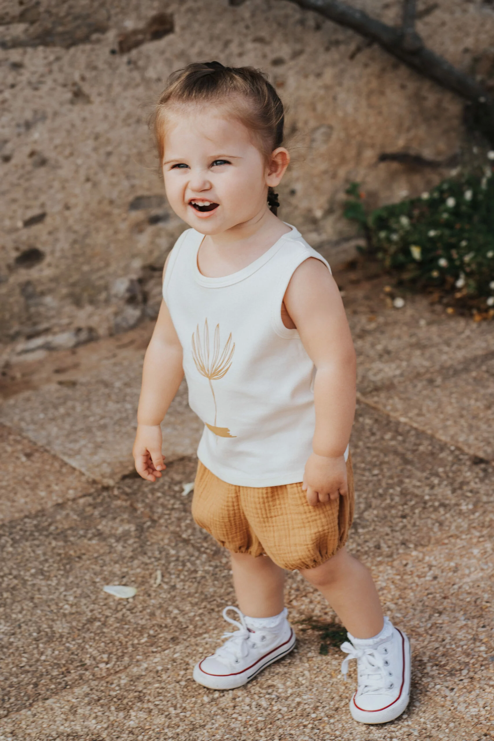 Les bloomers bébé apportent un style rétro à la tenue de votre enfant, offrant une alternative charmante au short classique. En plus d’être tendance, ils sont très confortables grâce à leur coupe ample.