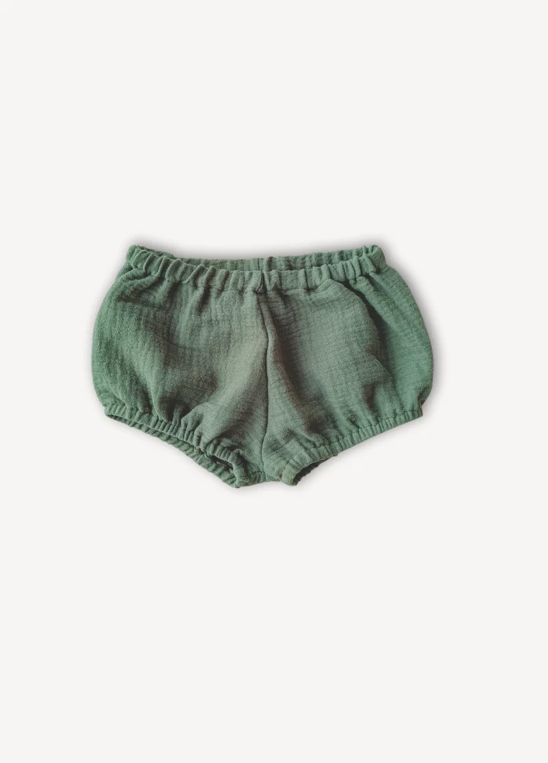 Il fera un cadeau parfait pour une naissance, et ravira autant les parents que le bébé qui le porte tant il est confortable. Le bloomer bébé en gaze de coton est élastique au niveau de la taille et aux cuisses. Il maintient bien la couche jetable ou lavable en gardant un aspect bouffant. Son coté oversized marié à la double gaze lui donne un style rétro et change du short basique.