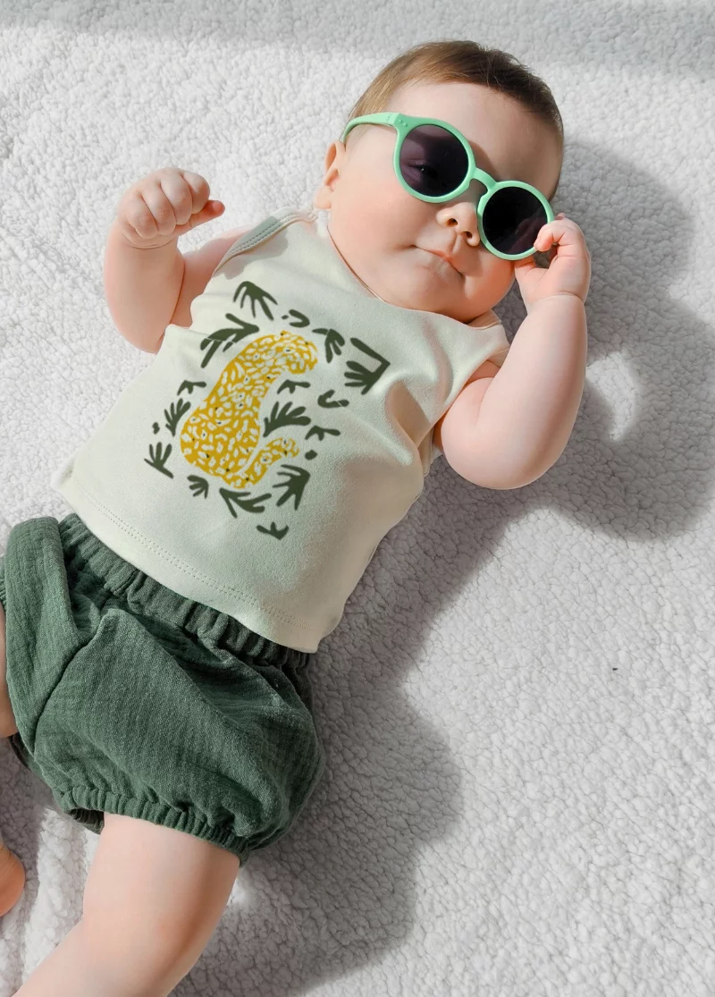Notre bloomer bébé est disponible du 3 mois au 2 ans, et ravira autant les garçons que les filles par sa couleur et sa forme unisexe. Proposer une mode mixte est une règle d’or chez Kapoune, car nous souhaitons que les enfants soient juste confortables dans leurs vêtements, sans code de genre.