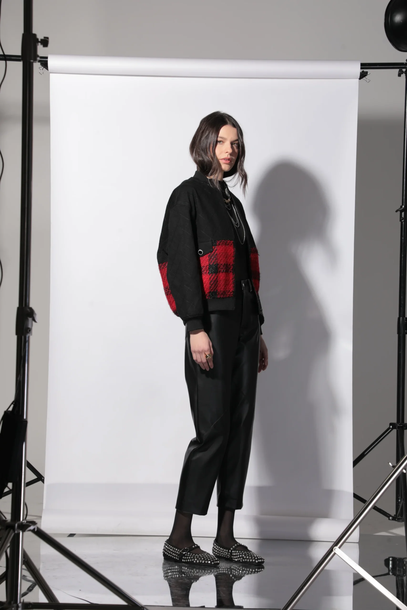 Le blouson Oscar joue sur les contrastes sport et chic avec audace et confort. Ce bomber revisité est pensé pour celles qui veulent marquer la saison avec style. Une pièce à la croisée du casual et du chic automnal avec une coupe sportive mais rehaussée par un tweed à carreaux rouge et noir lumineux accompagné de détails modernes.
