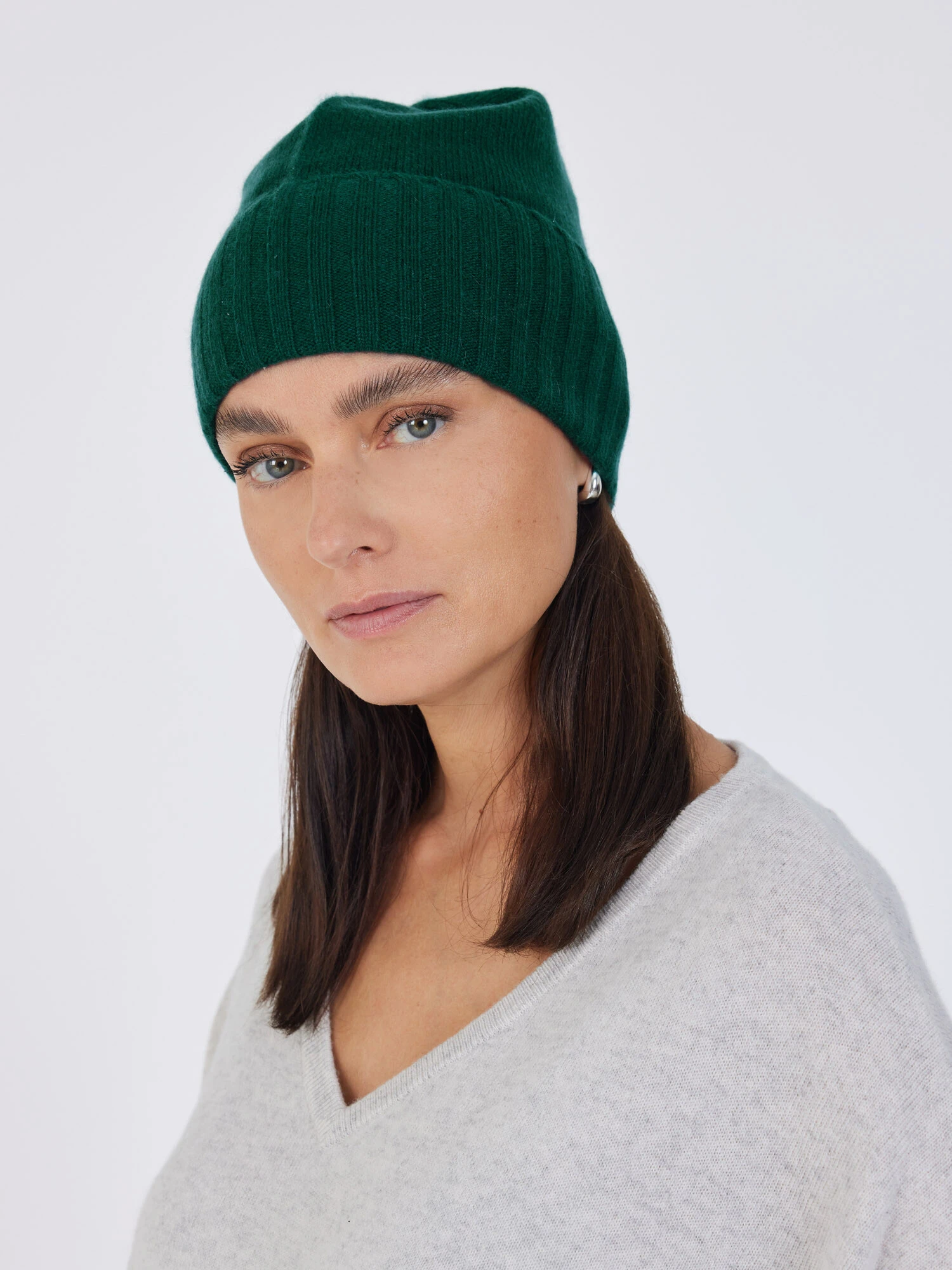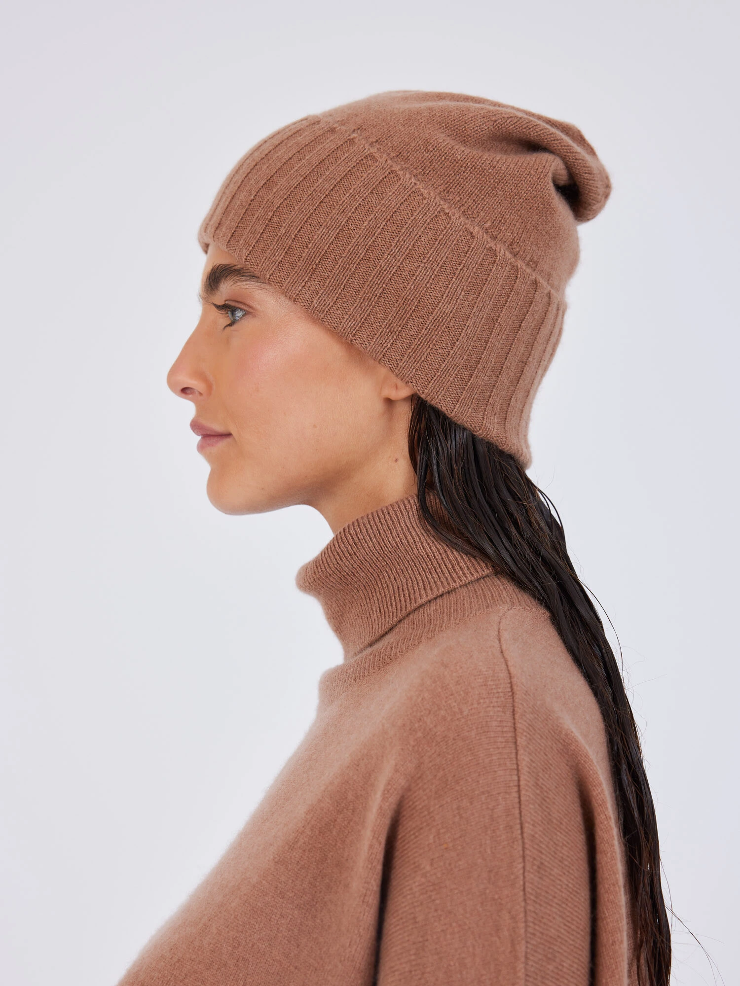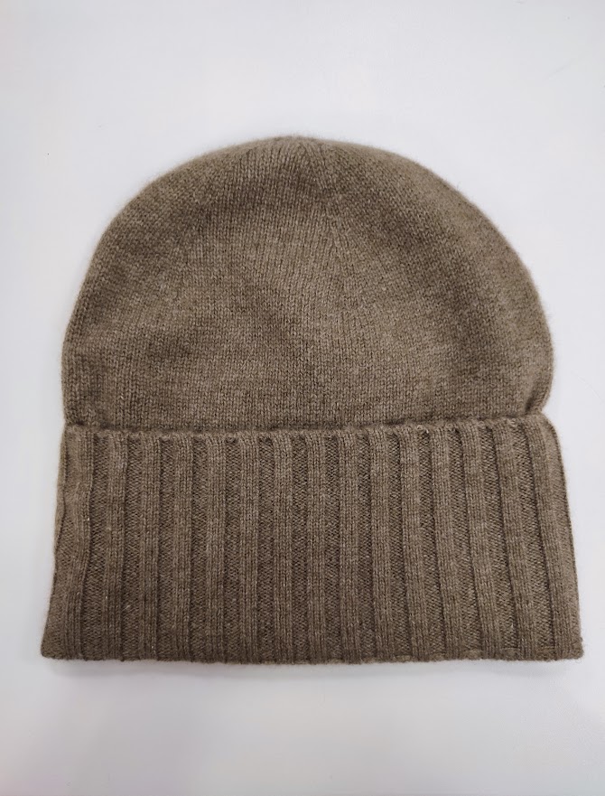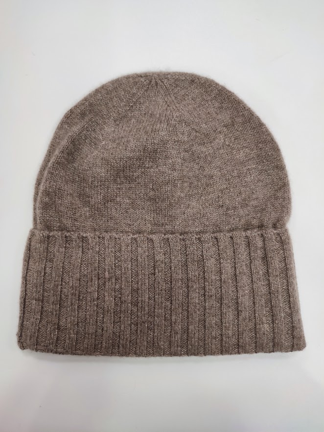 Bonnet avec revers côtelé 100 % cachemire – Taille unique