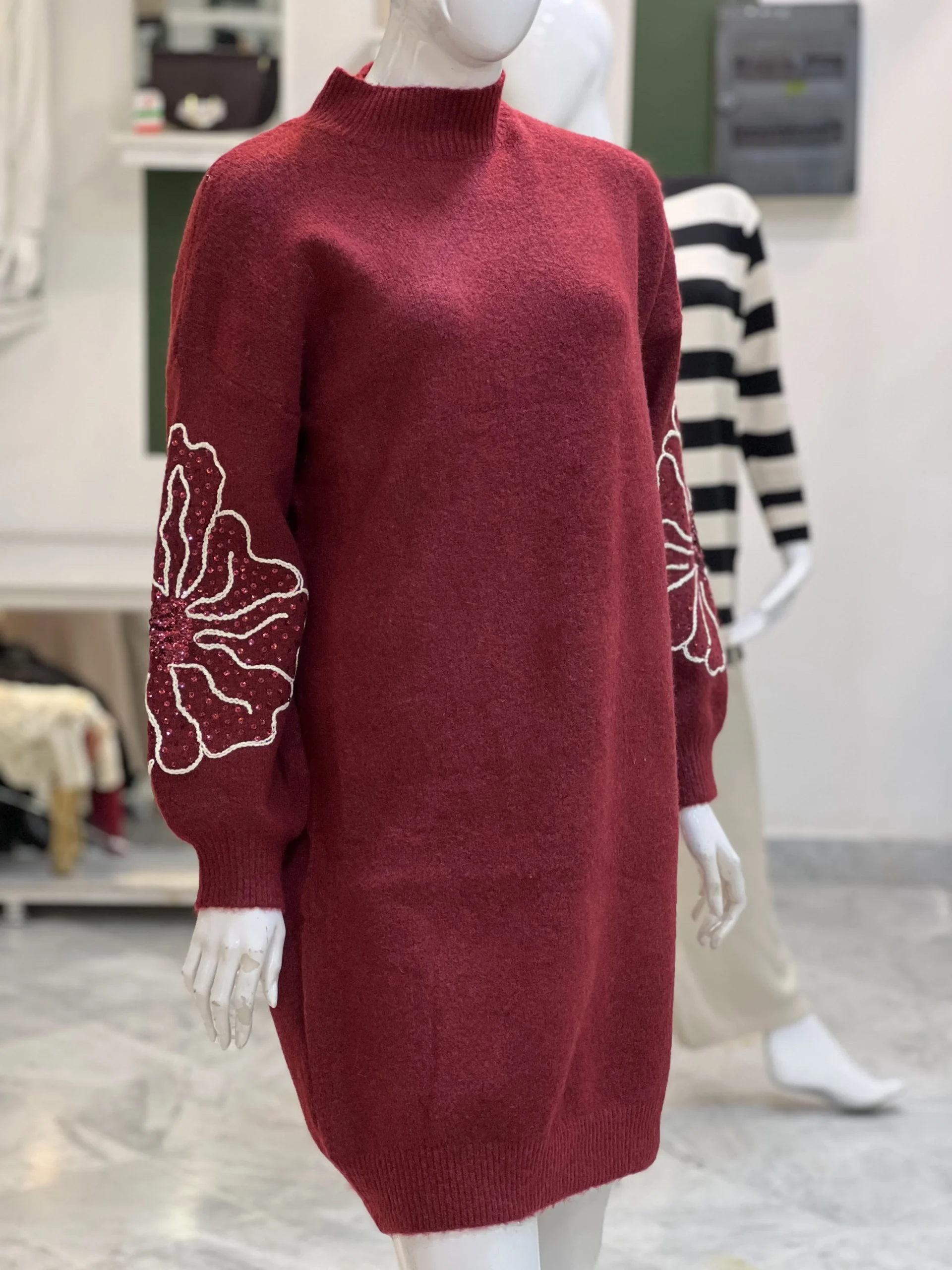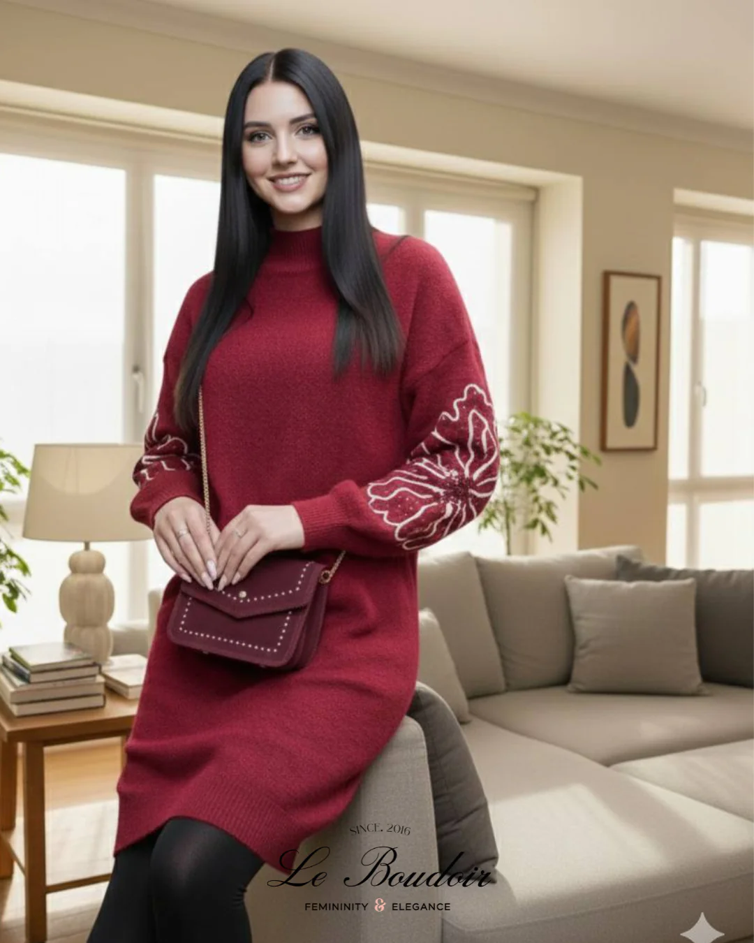 Élégante et confortable, la robe pull Bordélia est un incontournable de la saison. Sa teinte bordeaux profonde apporte une touche de sophistication, tandis que ses manches subtilement ornées de motifs raffinés ajoutent une note d’originalité. Conçue dans une maille douce et chaude, elle épouse délicatement la silhouette tout en offrant un confort absolu. Parfaite pour une allure chic et décontractée, que ce soit en journée ou en soirée.