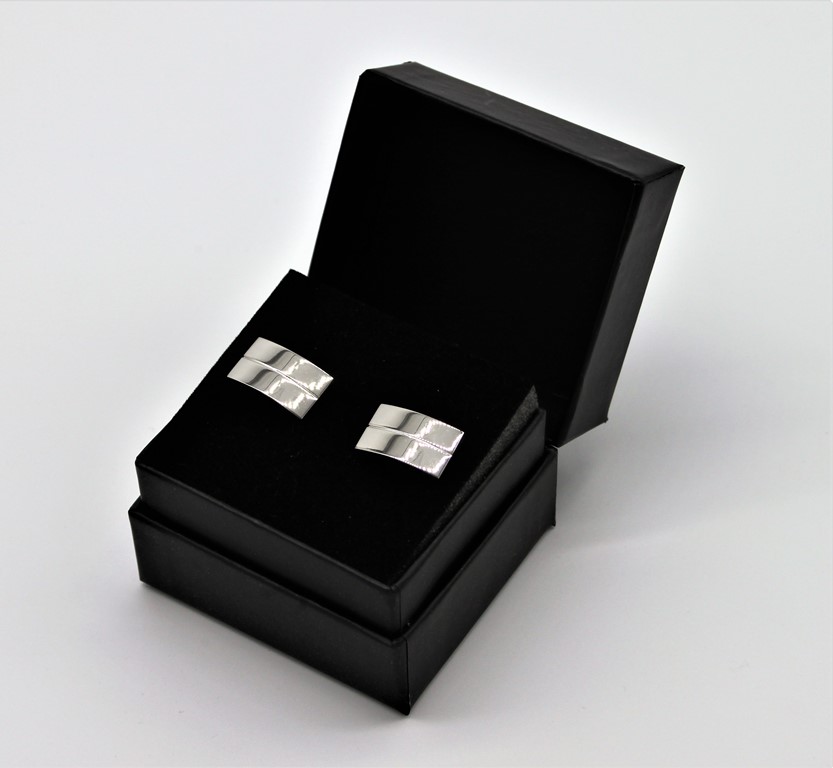 Boutons de Manchette Rectangles en Acier – Sobriété & Raffinement Lignes pures, éclat d’acier, style affirmé. Le détail masculin qui fait la différence.