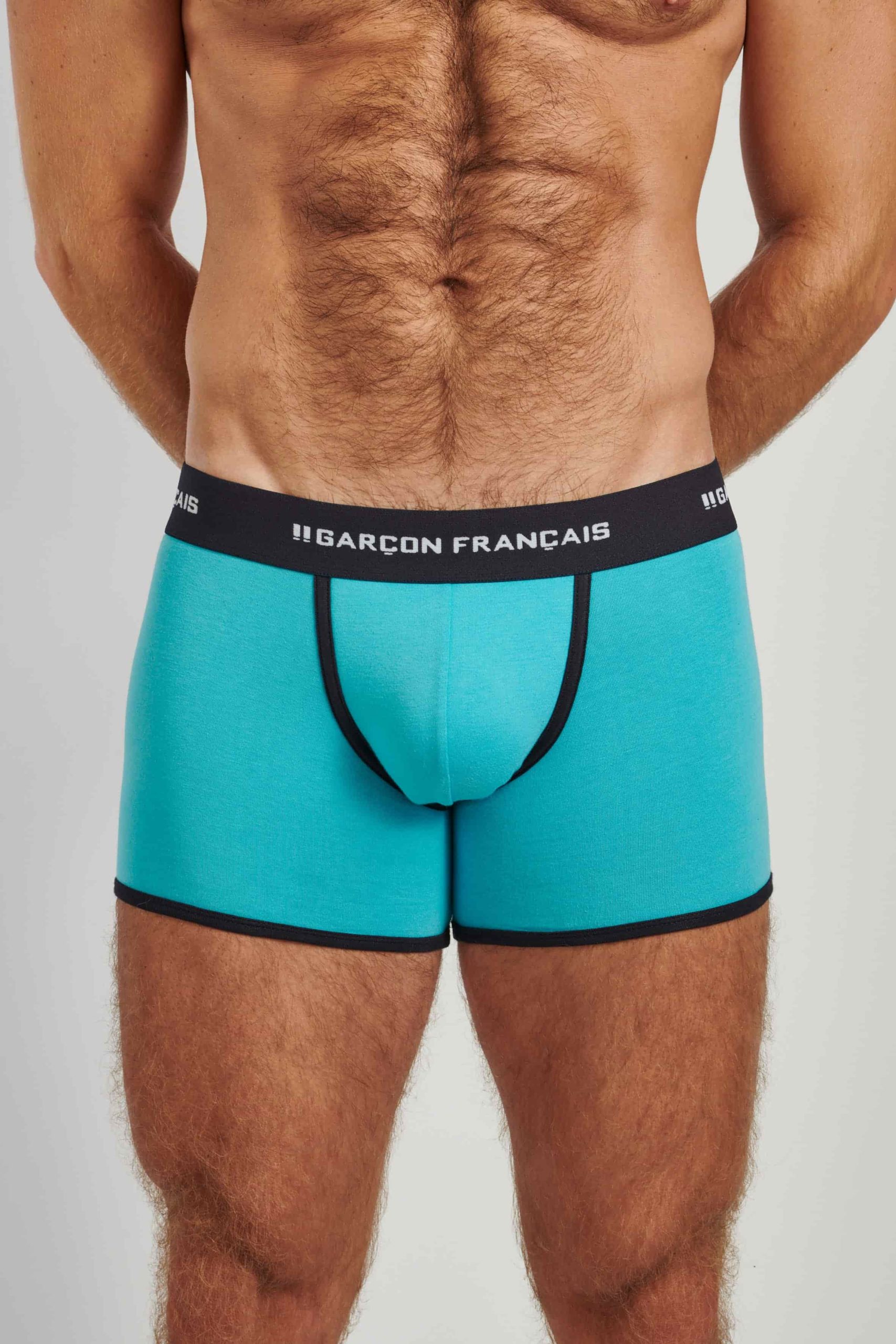 Affirmez votre style avec le Boxer Classique Garçon Français, disponible en gris chiné, vert pomme, rose ou turquoise. Taille basse, coupe ajustée, ce modèle allie confort, modernité et engagement écoresponsable.