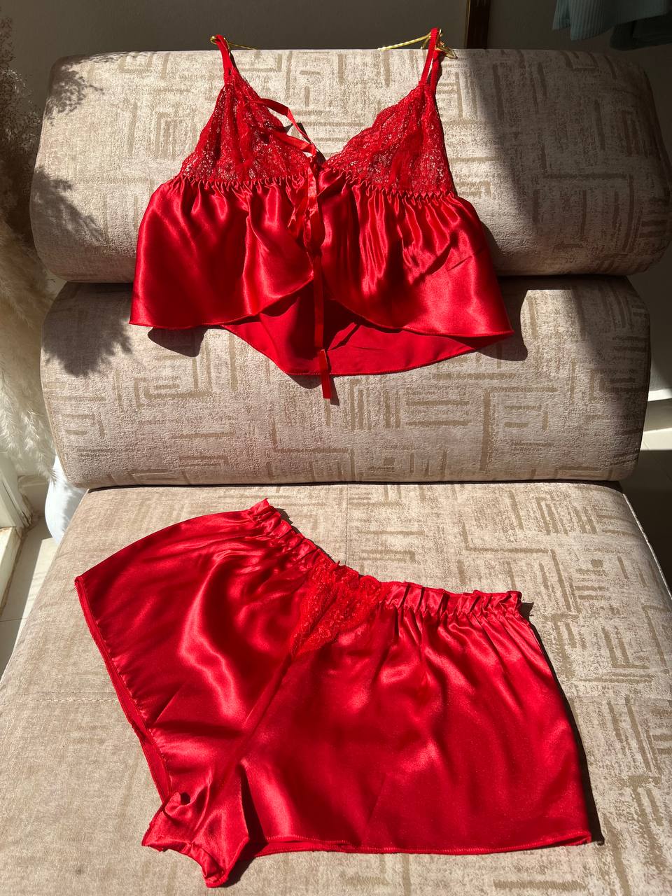 Ensemble 2 pièces : Bustier + shorty COULEURS : Noir / Rouge / Rose / Bleu / Blanc / Saumon MATÉRIAU : Dentelle & Satin TAILLES DISPONIBLES : Standard (36-42)