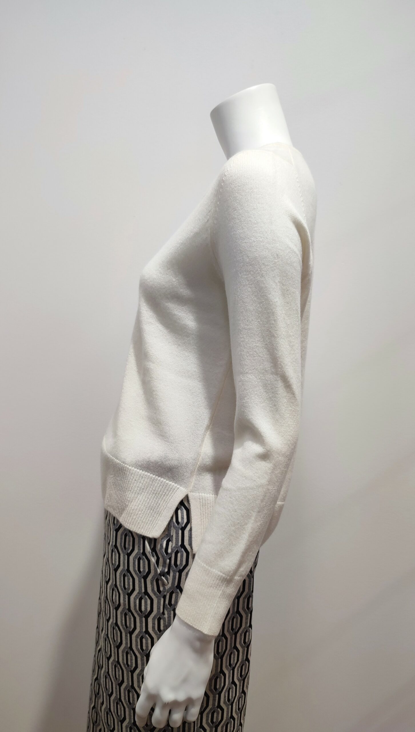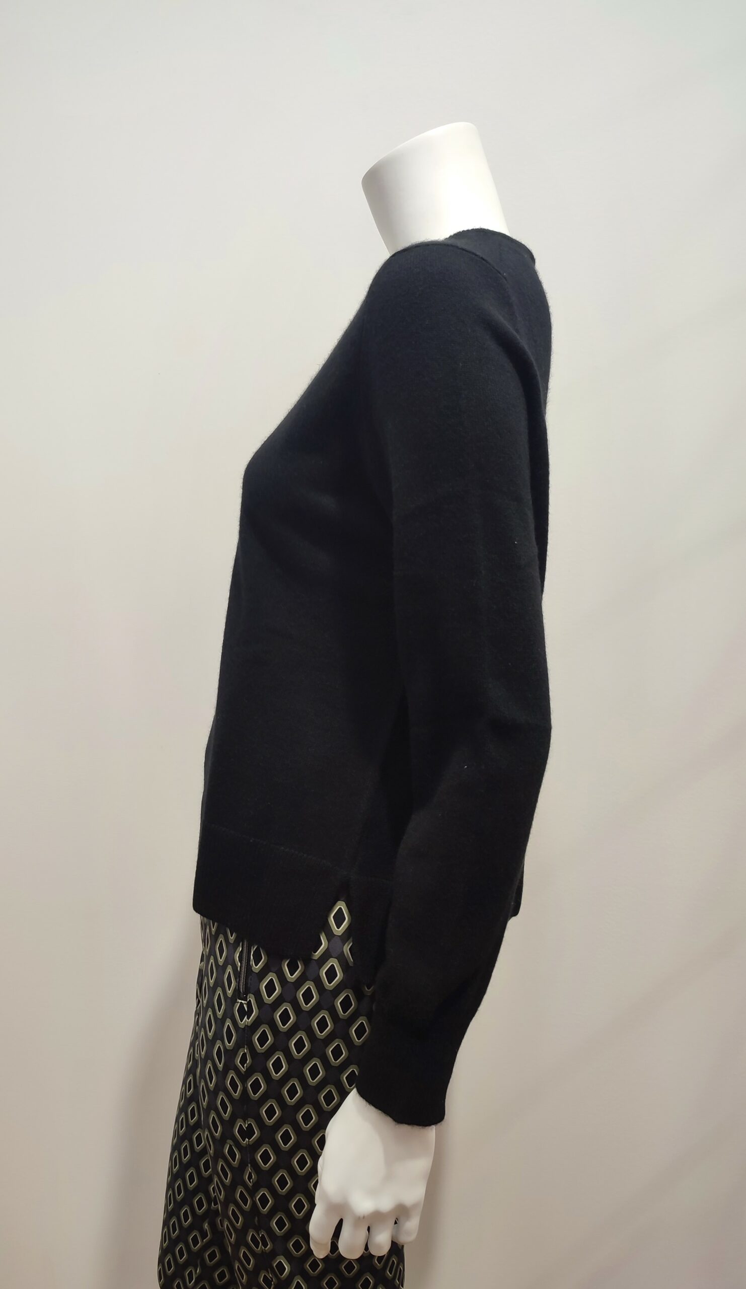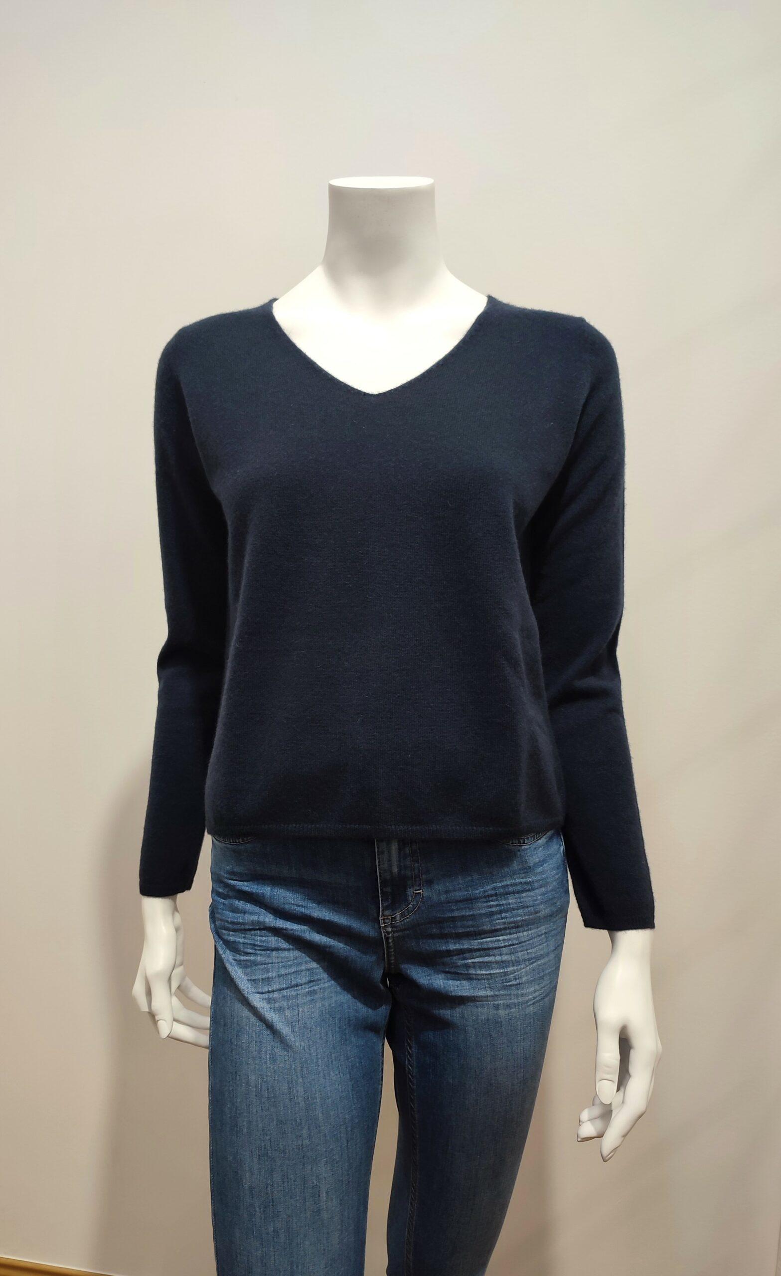 pull court, coupe droite – col V – manches montées – fendu sur les côtés