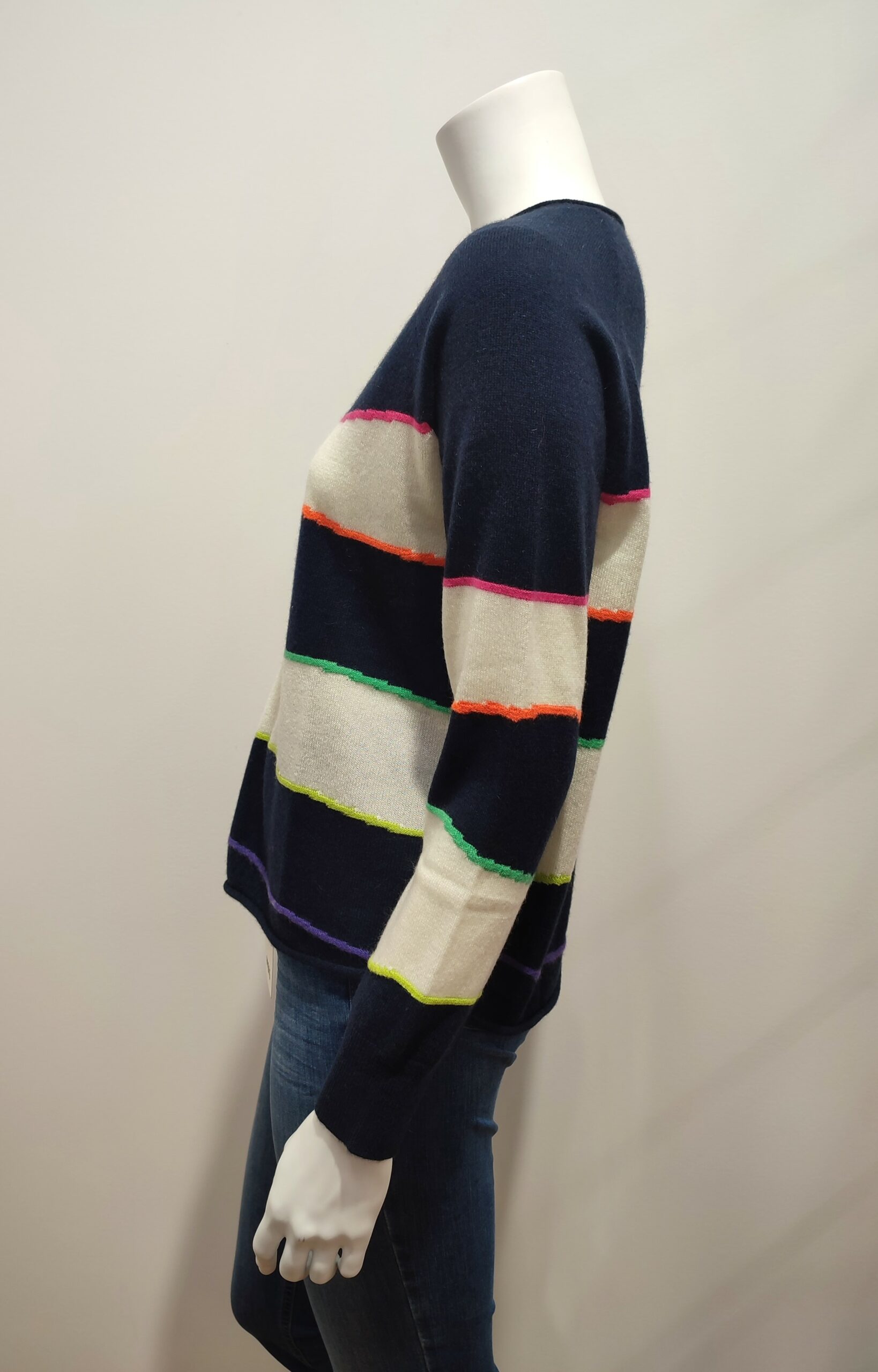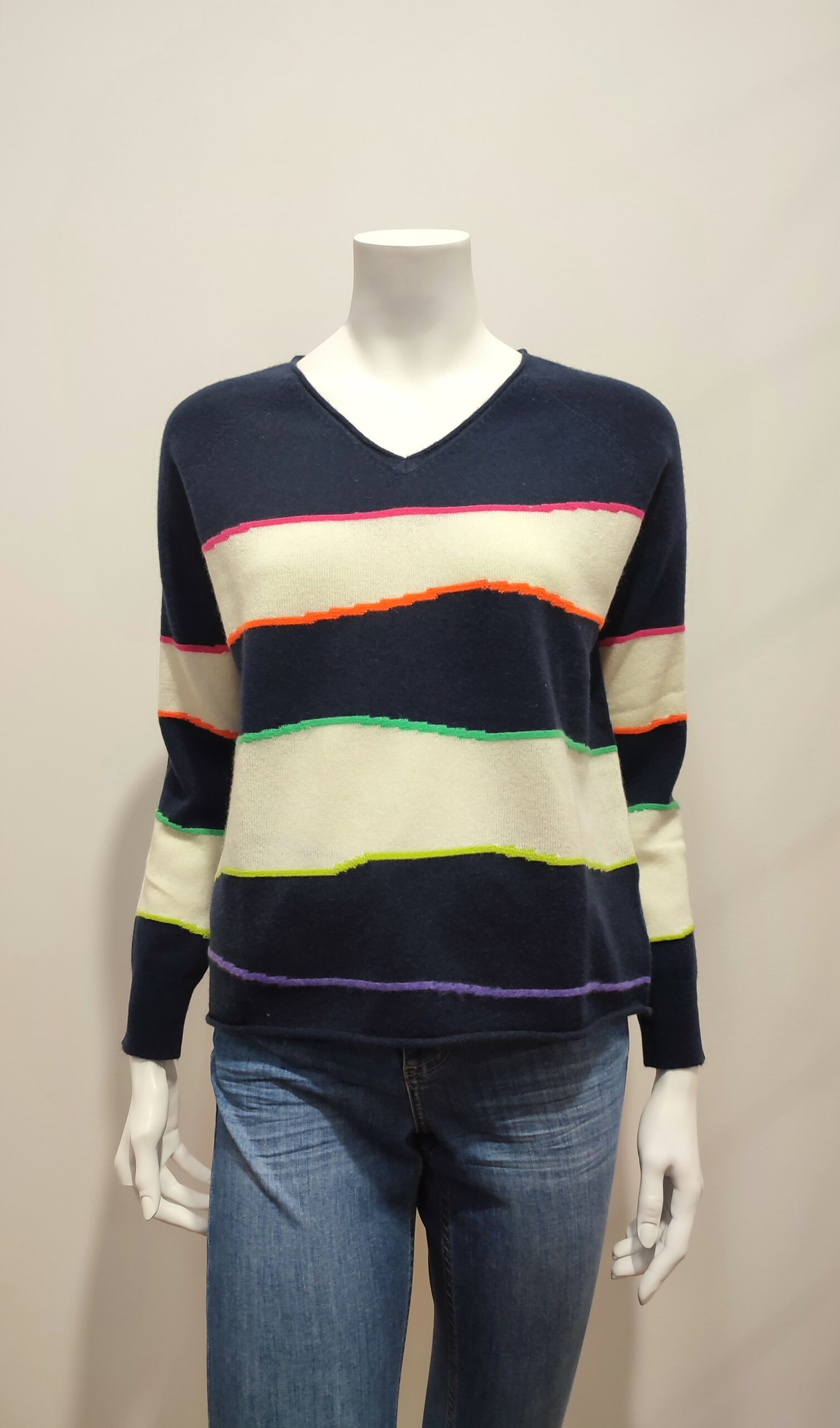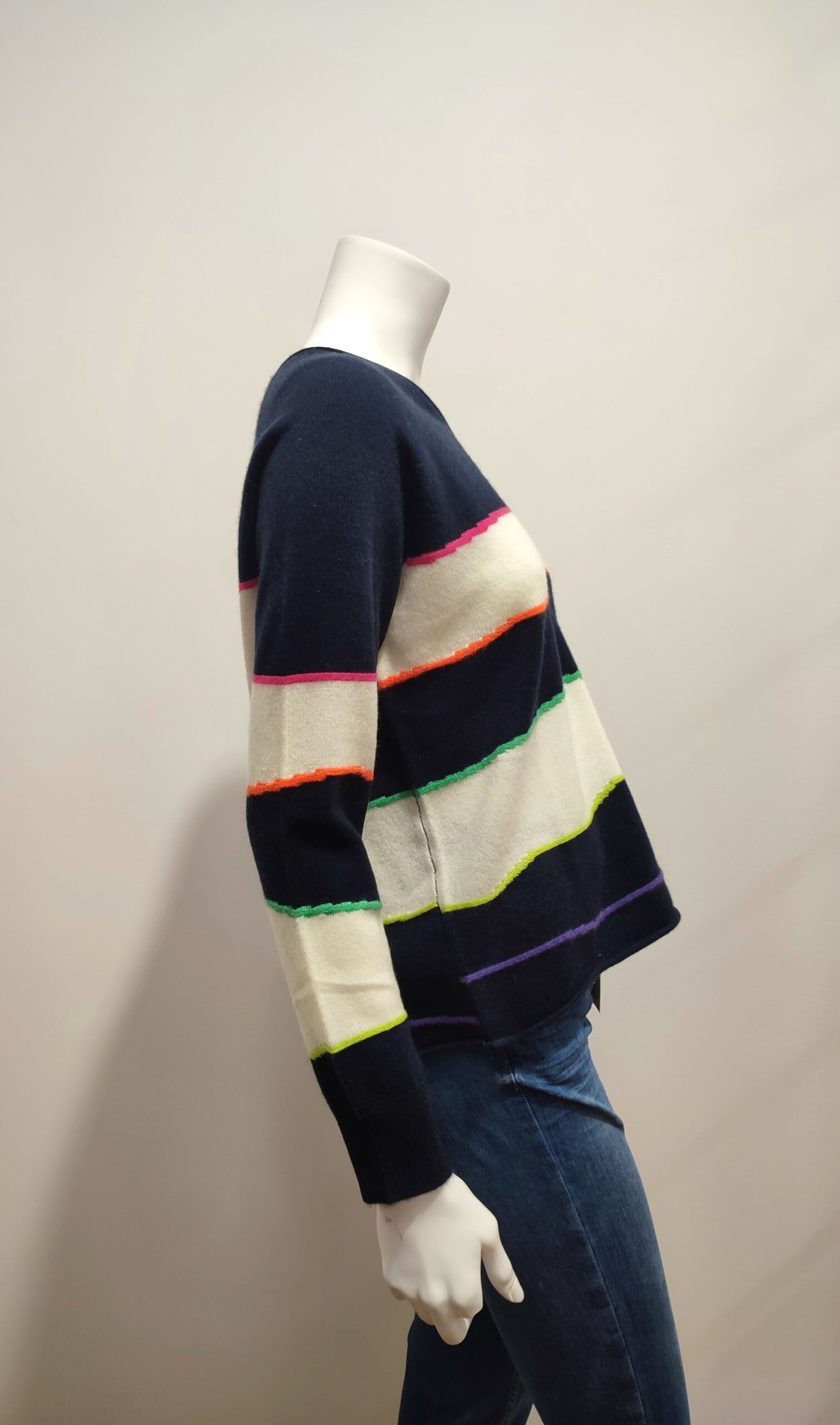 Couleur : rayé multicolore sur fond bleu marine