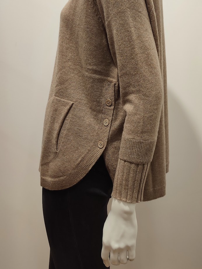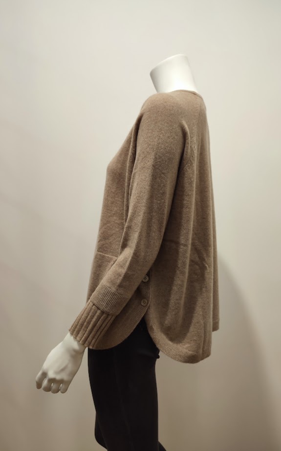 Pull oversize – col rond – arrondi dans le bas – boutons sur les côtés – plissé au niveau des poignets – 2 poches ventrales