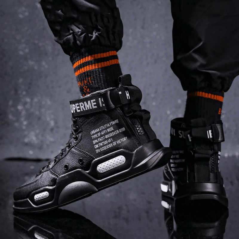 Arborez ces magnifiques chaussures, délicatement conçues pour les fans de la tendance Techwear. On retrouve le côté sombre et futuriste du thème cyberpunk, ainsi que le style urbain de la mode streetwear. Affirmez fierement votre personnalité en portant ces chaussures classes et stylées !