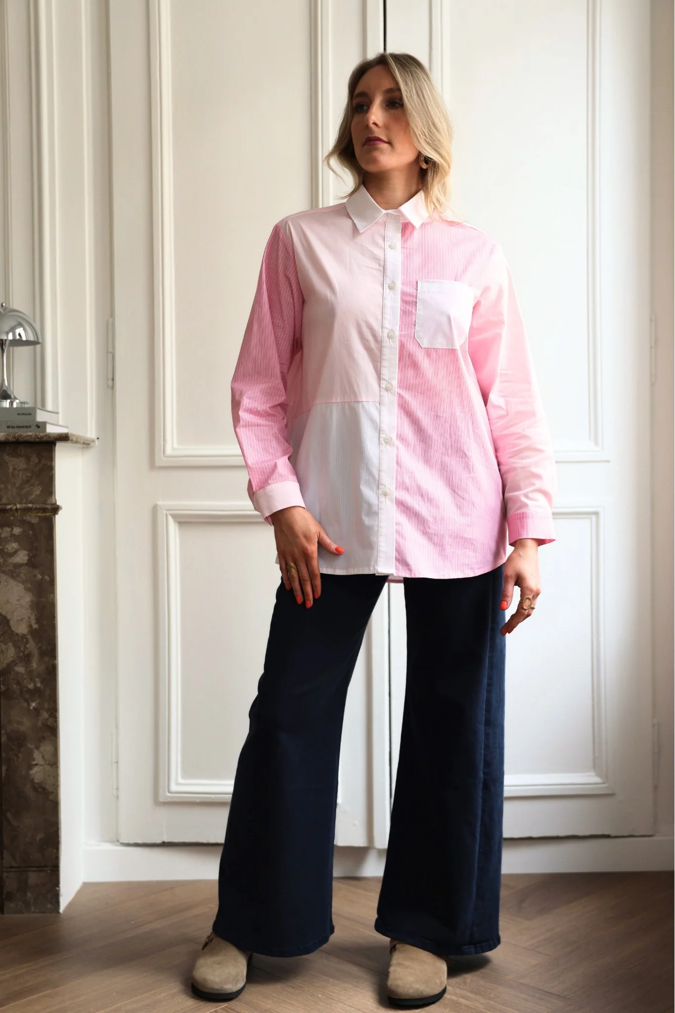 Lyvia, c’est la chemise à rayures qui conjugue fraîcheur et intemporalité. Sa coupe droite et ses rayures roses délicates en font un essentiel du vestiaire à porter tout au long de l’année, en solo ou sous une maille.