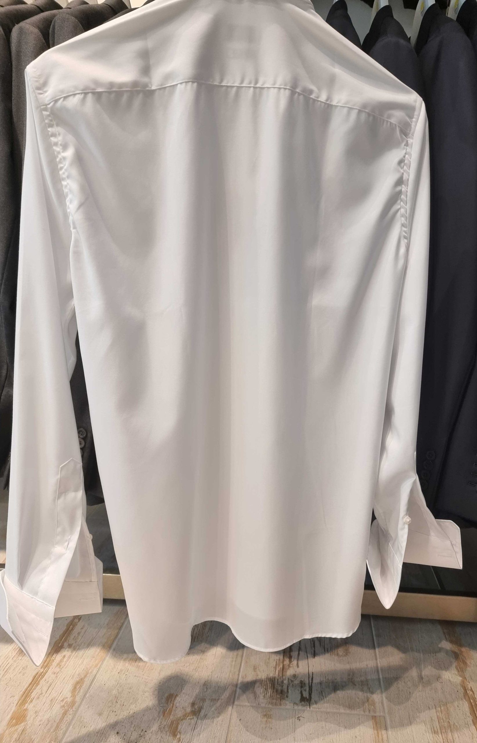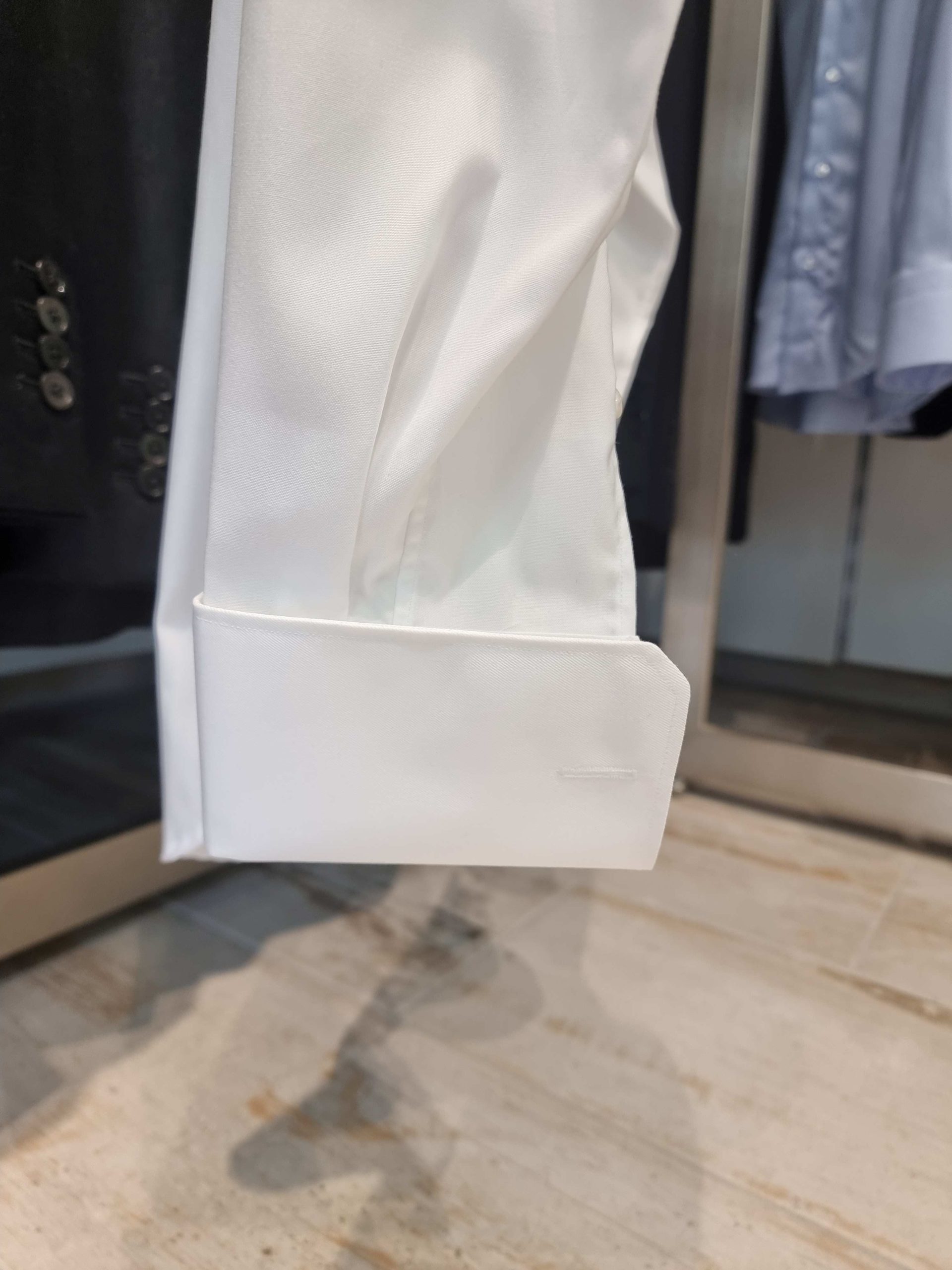 Chemise Blanche Cérémonie (1118J) – Poignets Mousquetaires – Coupe Régular Cérémonie en vue ? Distinguez-vous avec cette chemise blanche aux détails d’exception. Classe absolue, made in Italie