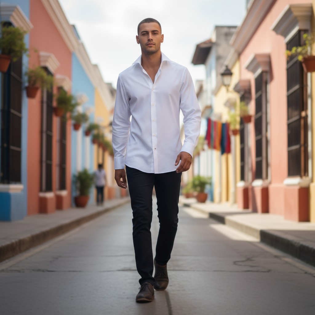 Chemise Blanche Italienne Homme Coupe régular Col Horizontal – Coton Sergé – Repassage Facile