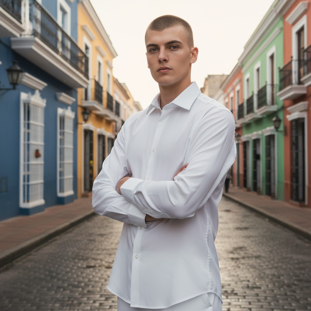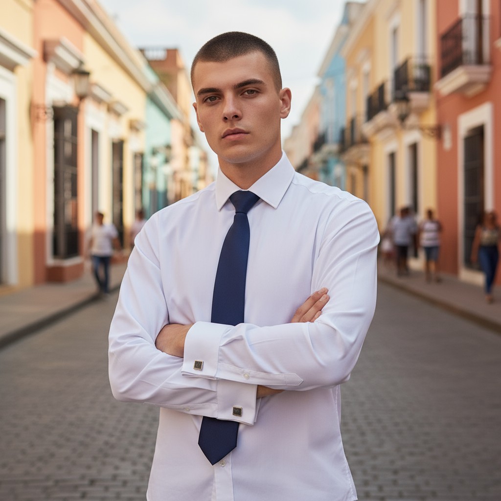 Les boutons nacrés complètent cette pièce intemporelle avec une touche de subtilité. Une chemise de cérémonie haut de gamme, idéale pour les mariages, soirées habillées ou événements formels.