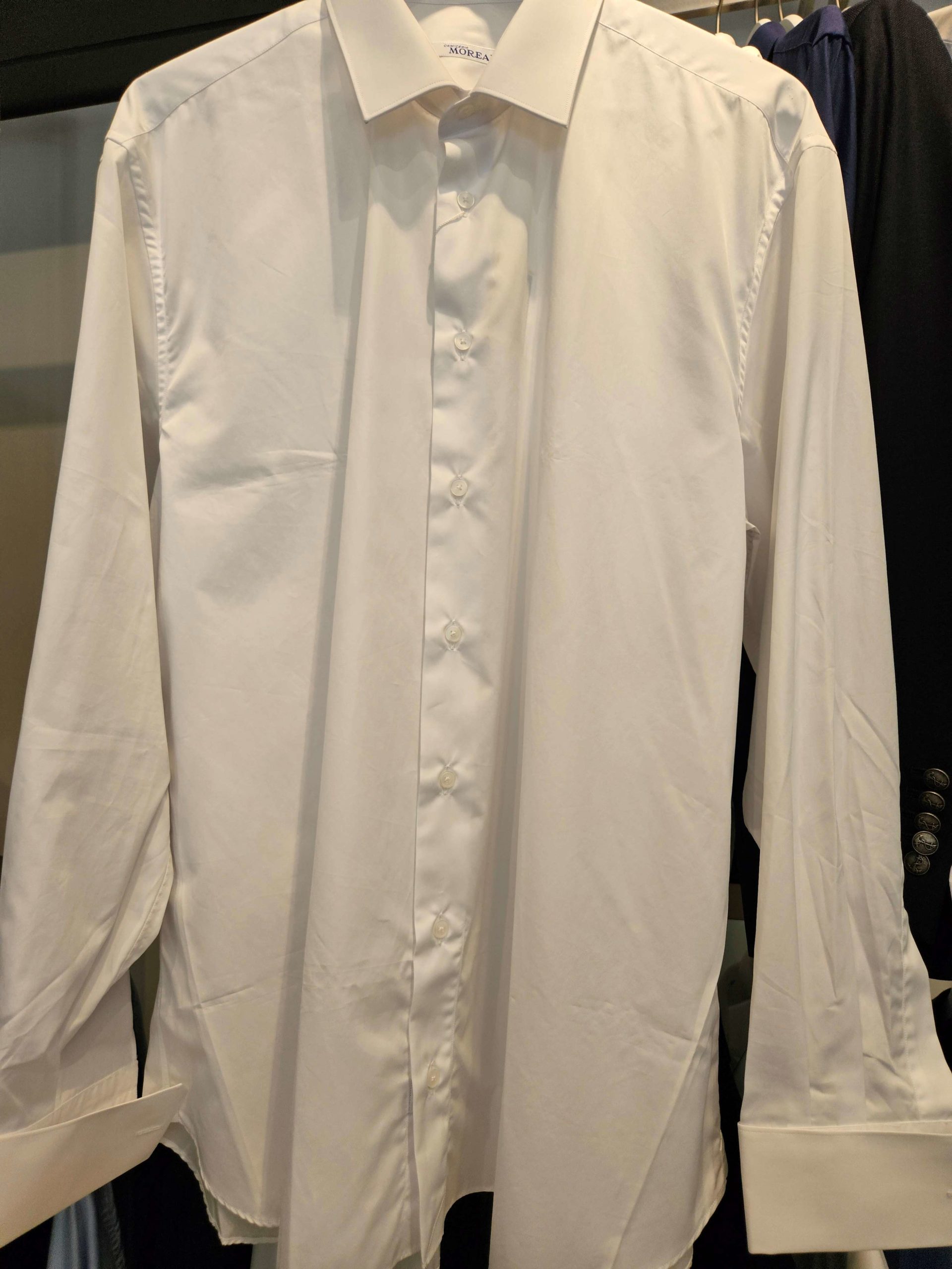 La chemise blanche popeline à poignets mousquetaire de Moréal Roma est un choix raffiné pour toutes les grandes occasions. Confectionnée en 100 % coton popeline, elle offre une texture lisse, douce et élégante au porté.