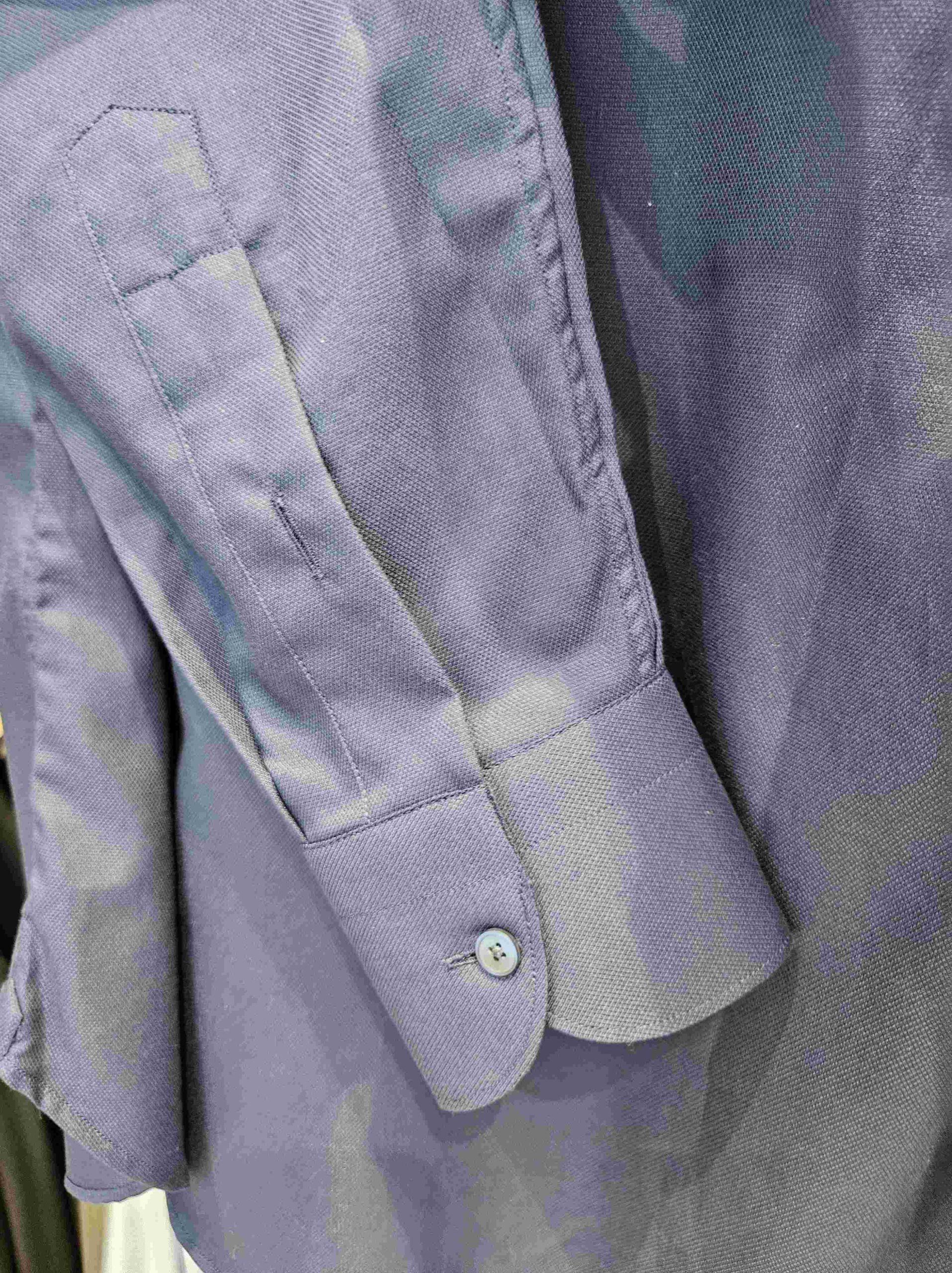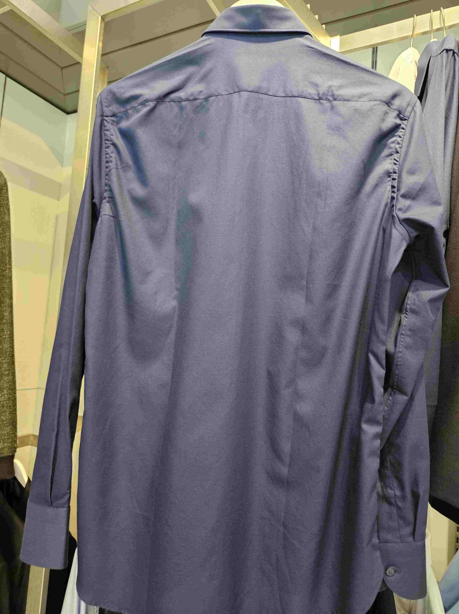 Son col boutonné et ses poignets arrondis apportent une touche de classicisme, rehaussée par des boutons ton sur ton d’un bleu subtil. Fabriquée en Italie, cette chemise témoigne du savoir-faire textile italien, avec une attention particulière portée aux finitions et à la qualité des matériaux.
