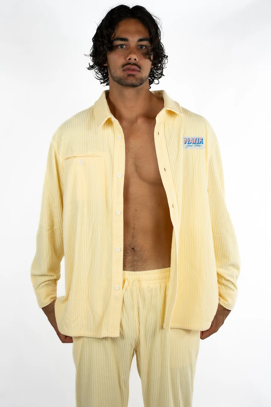 Une énergie solaire, une coupe qui respire, un look feel-good à porter dès les premiers rayons. Design Natif Good vibes Ensemble haut et bas disponible Leger et confortable Velours Côtelé Couleur : Crème