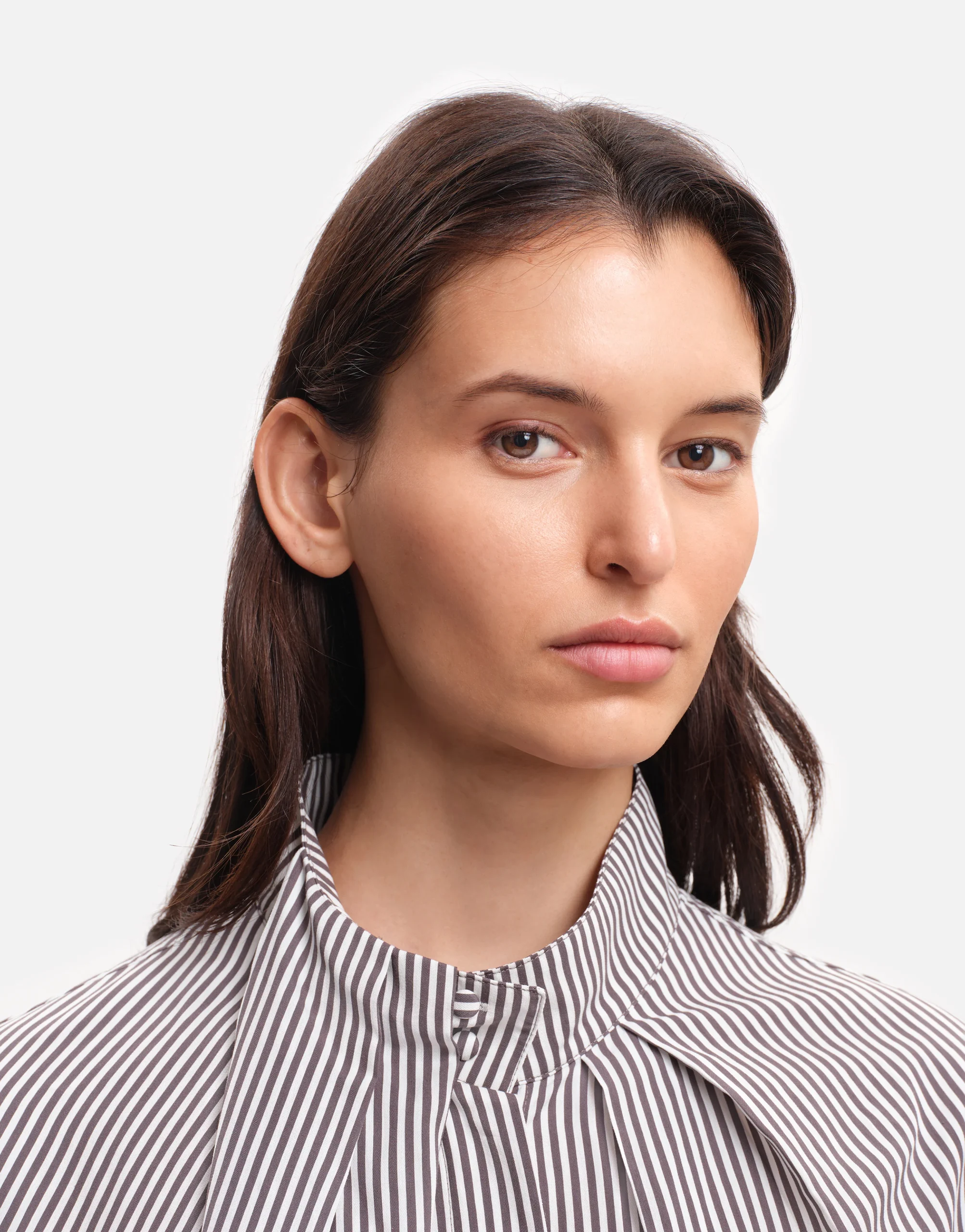 La chemise INDIA revisite l’intemporel chemisier rayé avec une coupe fluide et des détails sophistiqués. Déclinée en gris à fines rayures, elle se distingue par son col rond à plis et ses finitions raffinées qui apportent une touche moderne et élégante au vestiaire.