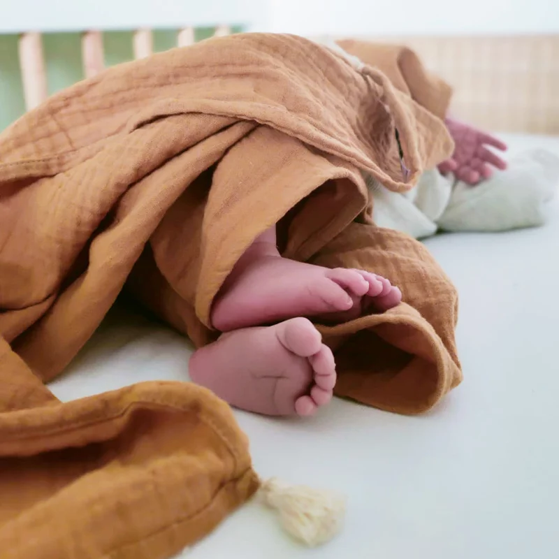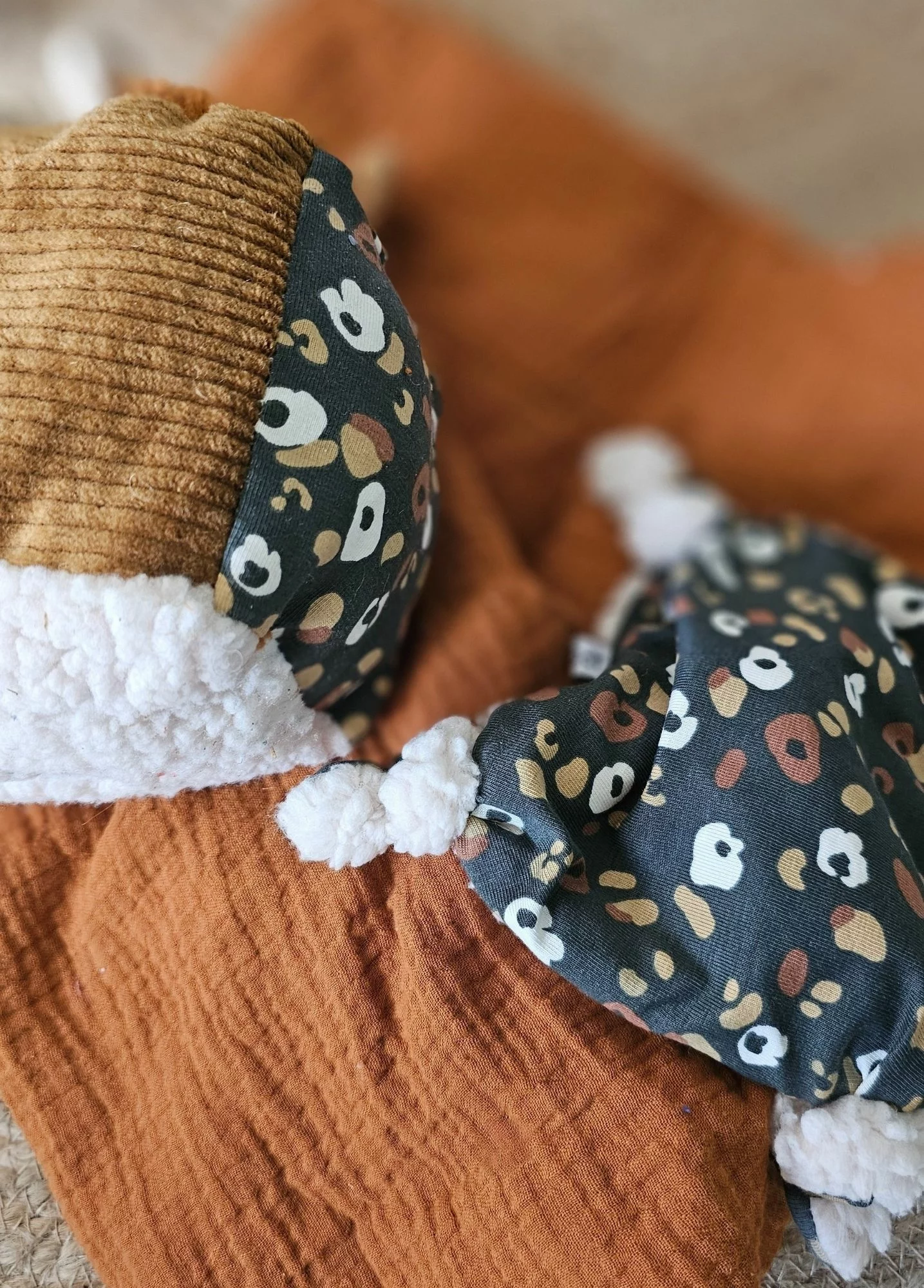 Coffret cadeau bébé doudou, lange et cube d’éveil Camel