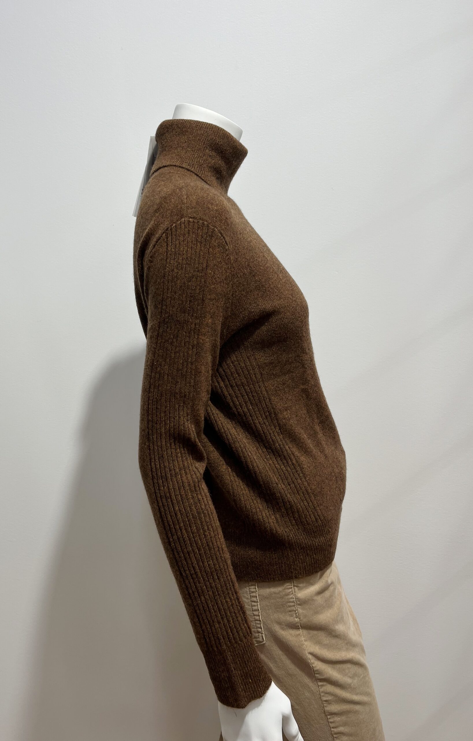 Pull col roulé marron, une couleur assez nouvelle et tendance cet hiver.
