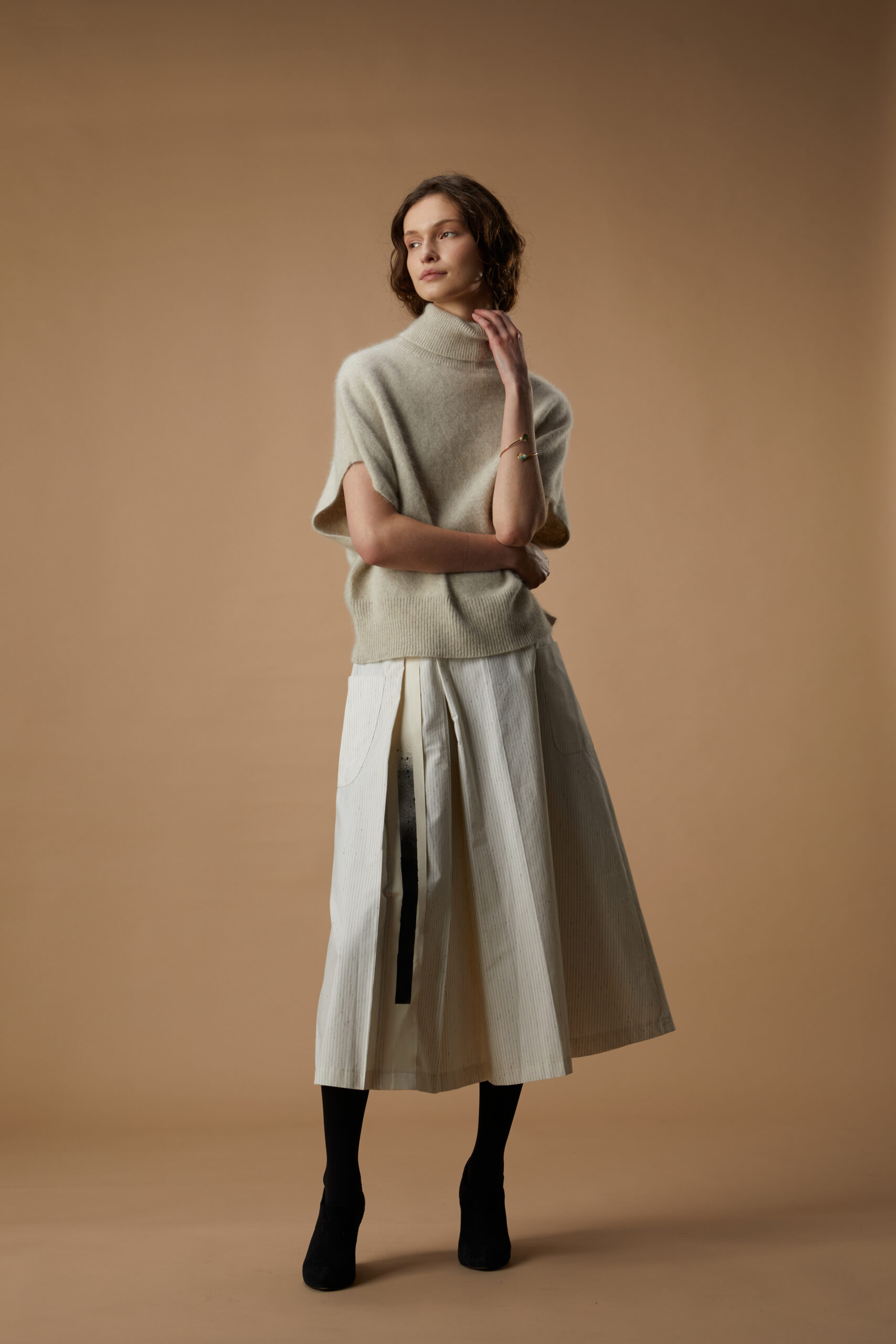 Coupe oversize – resérré dans le bas – manches courtes chauve souris – col roulé