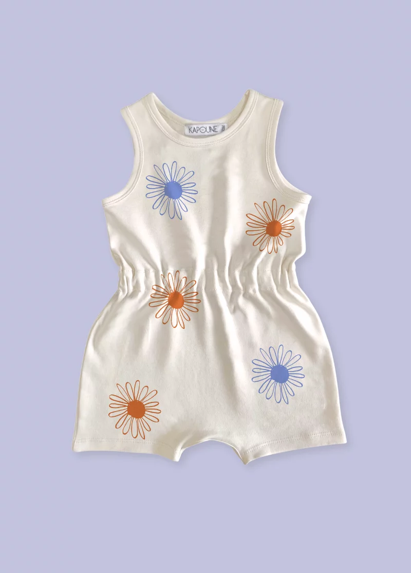 Découvrez la combishort FLOWERS de Kapoune, confectionnée avec soin à partir de coton biologique certifié. Parfaite pour les journées ensoleillées, cette combishort sans manches offre à votre bébé ou enfant un confort optimal tout en respectant l’environnement.