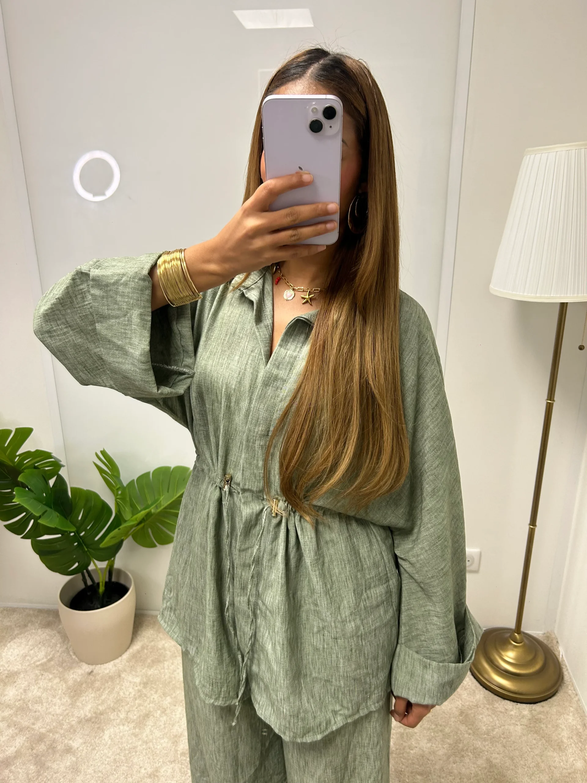 Ensemble pantalon + chemise ajustable