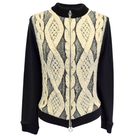 Coupe cintrée – col rond – fermeture éclair à double curseur devant – imprimé devant – uni noir dans le dos