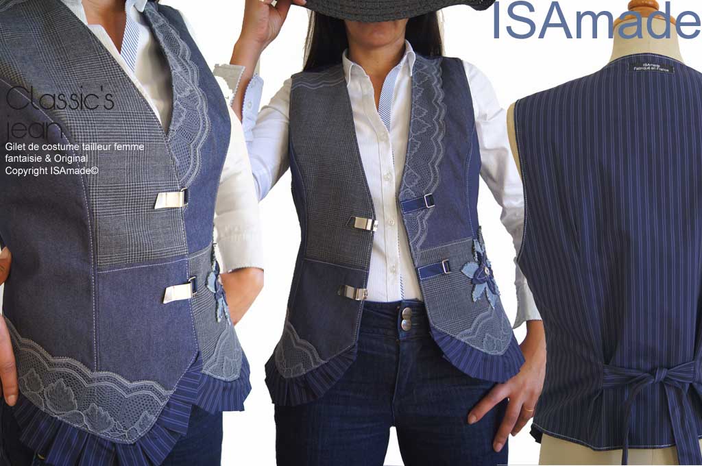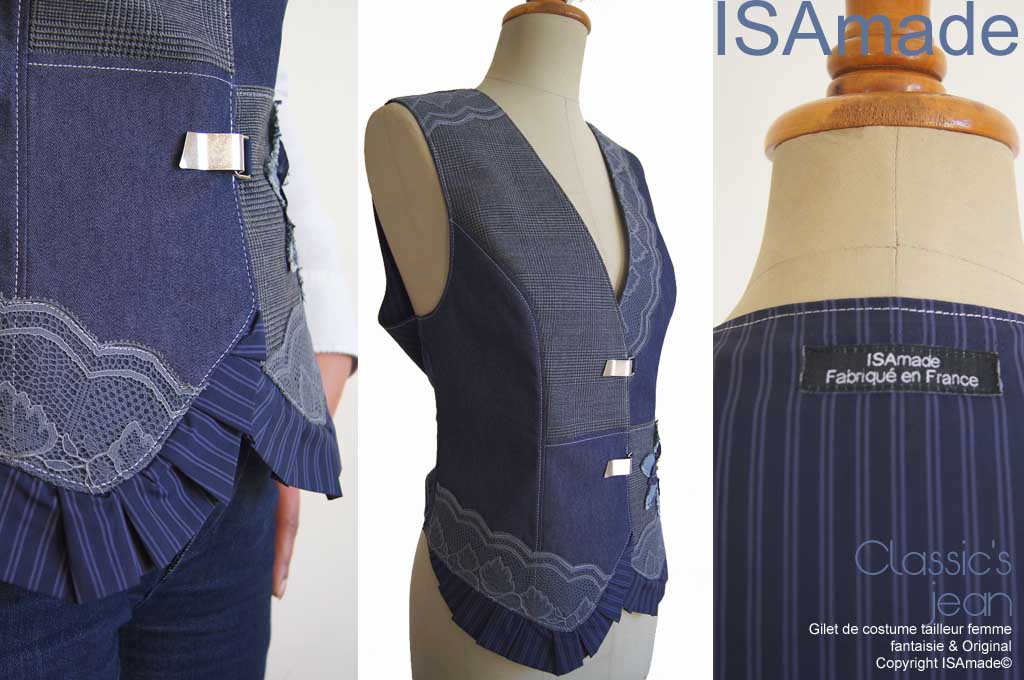 Une nouveauté dans la ligne de Vêtements ISAmade d’un classicisme Couture et Fantaisie : une réinterprétation du classique gilet d’homme en version Féminine Contemporaine Créateur et moderne !