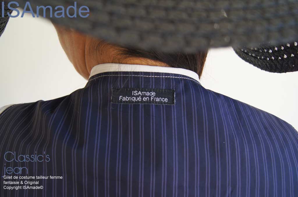 ISAmade vous propose un Gilet tailleur Femme sans manches comme une veste sans manches facile à porter sur un pull ou une chemisier : Une pièce mode tendance Originale et Fantaisie empruntée aux hommes dans une version ultra féminine !