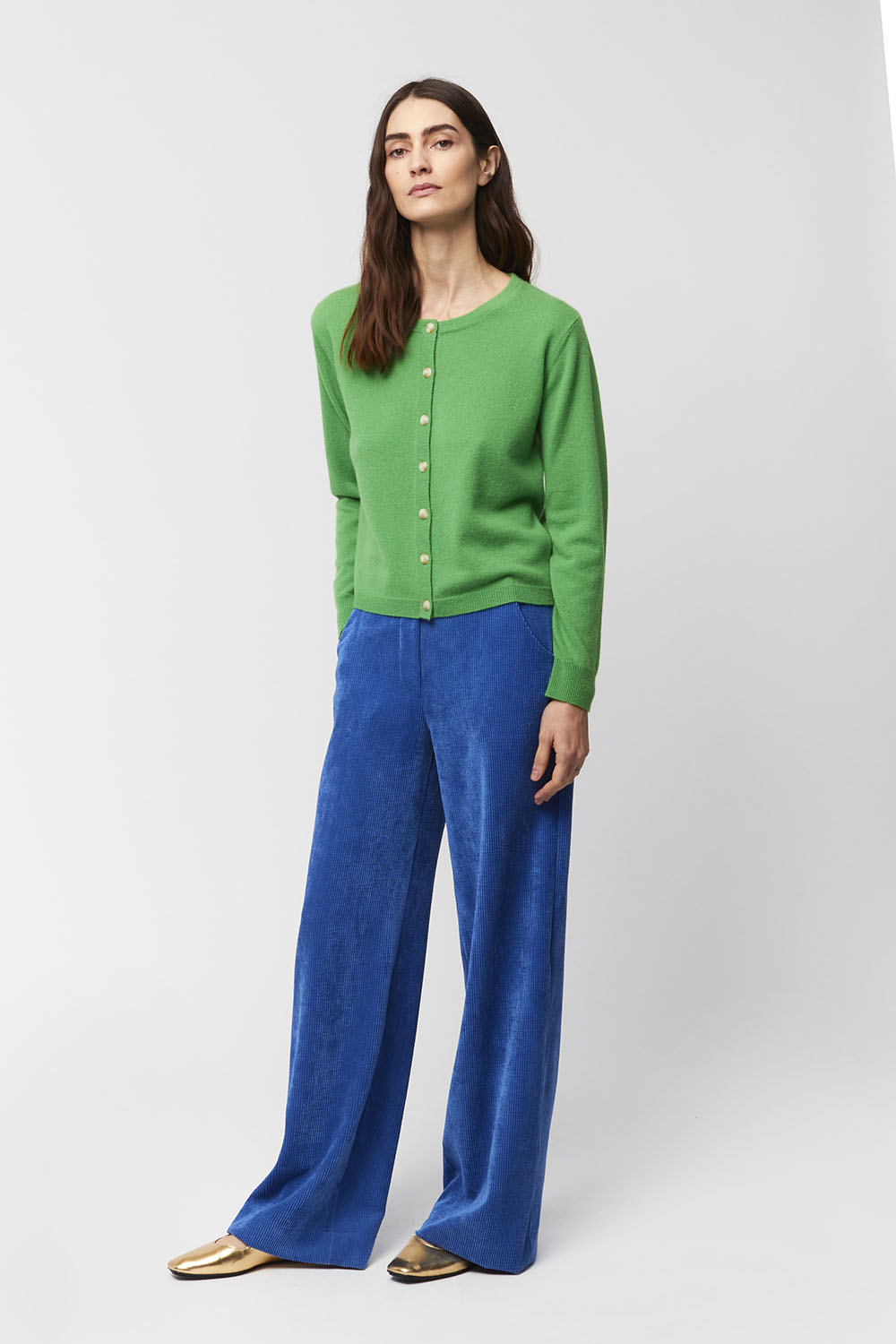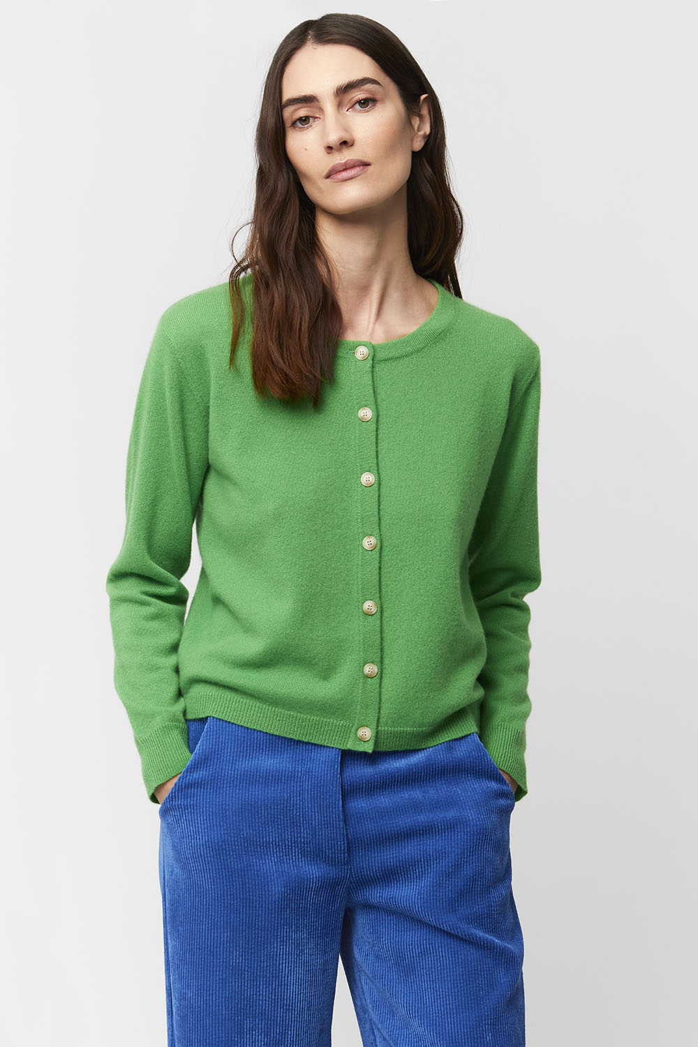 Un joli vert cru pour aller avec toutes vos couleurs de pantalons ou presque !! 100 % cachemire de la marque Aldomartins
