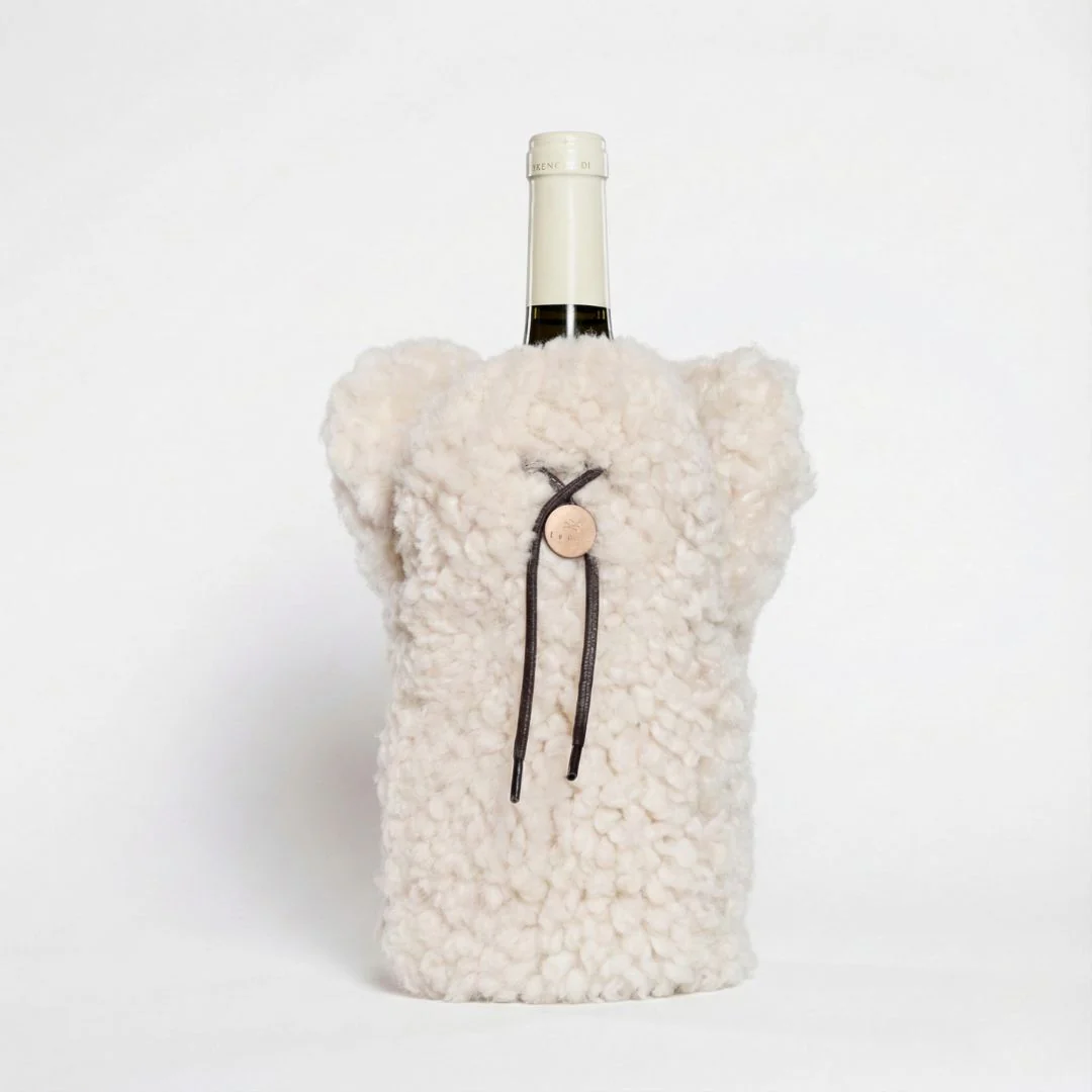Fini le seau à glace qui goutte. Voici le garde-corps de vos meilleures bouteilles. Conçu en peau de mouton retournée véritable, cet étui agit comme un bio-isolant ultra-performant pour maintenir votre vin ou champagne à température idéale pendant 4 heures minimum. Disponible en format classique ou Magnum pour habiller la table avec une élégance brute.
