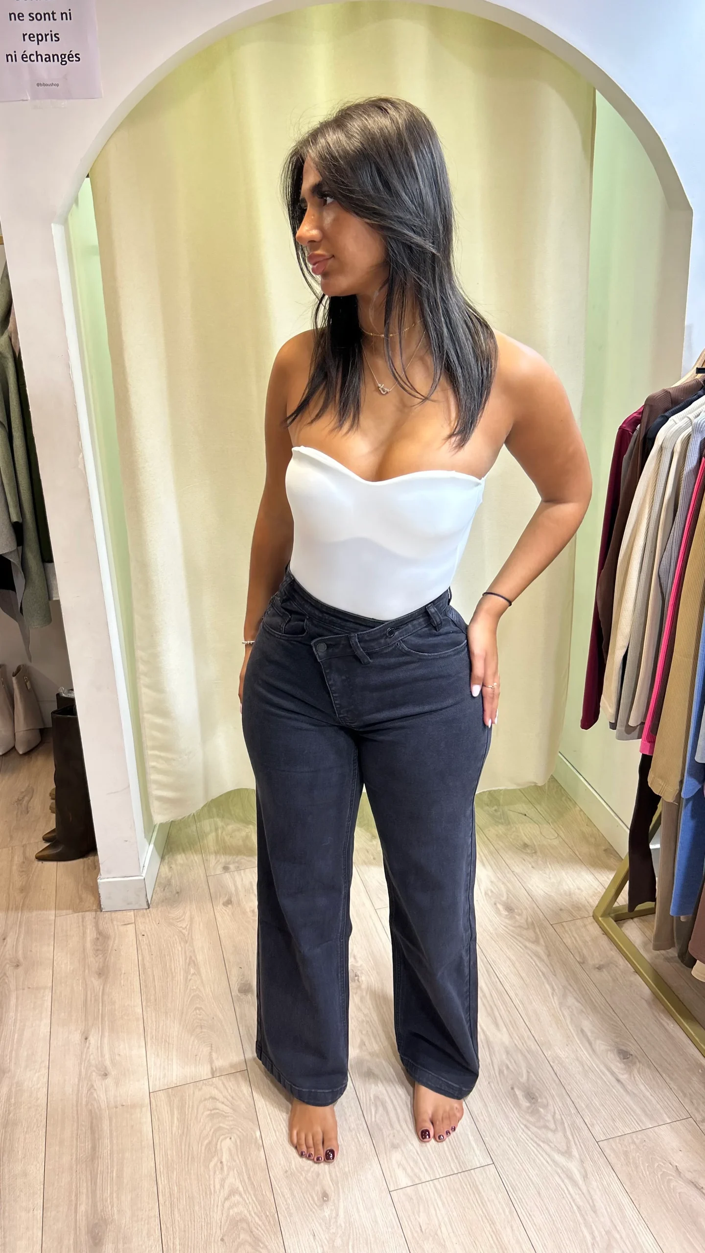- Associations : chemise rentrée, pull oversize, blazer ou crop top selon l’effet désiré.