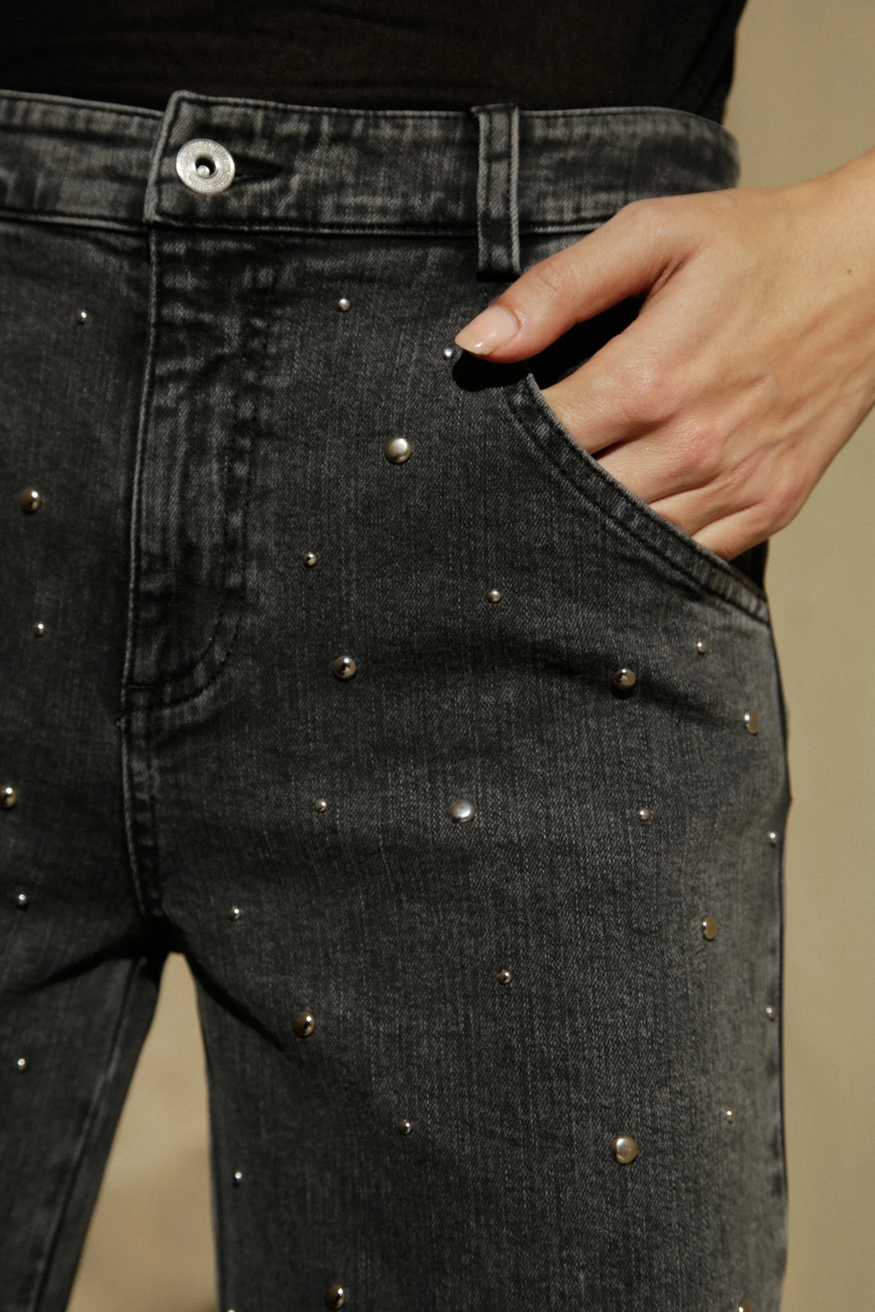 Jean Gabriel en denim noir à clous