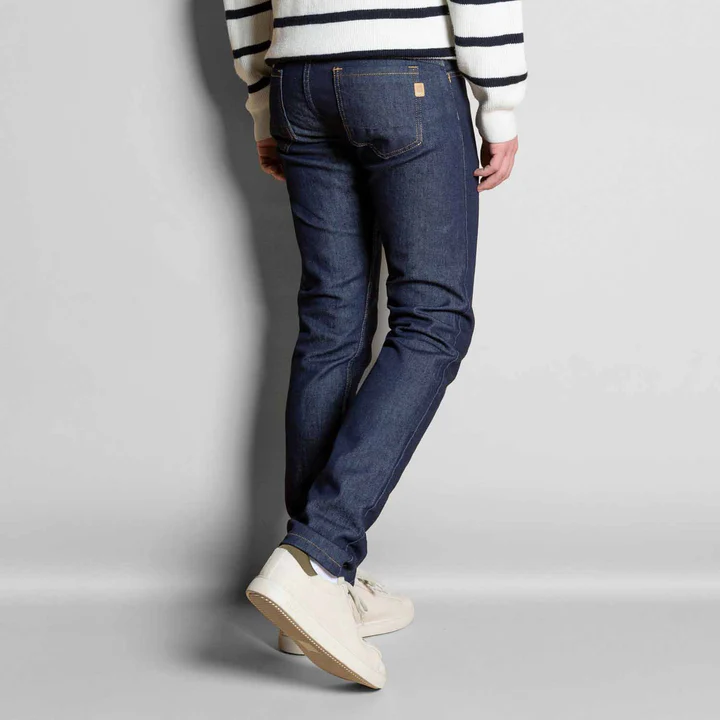 Conçu à partir d’un denim de qualité, ce jean offre un excellent confort grâce à son tissu souple, résistant et stretch. Il est composé de 98 % de coton (biologique certifié GOTS pour le bleu brut) et de 2 % d’élasthanne. Le poids du tissu varie selon la couleur :