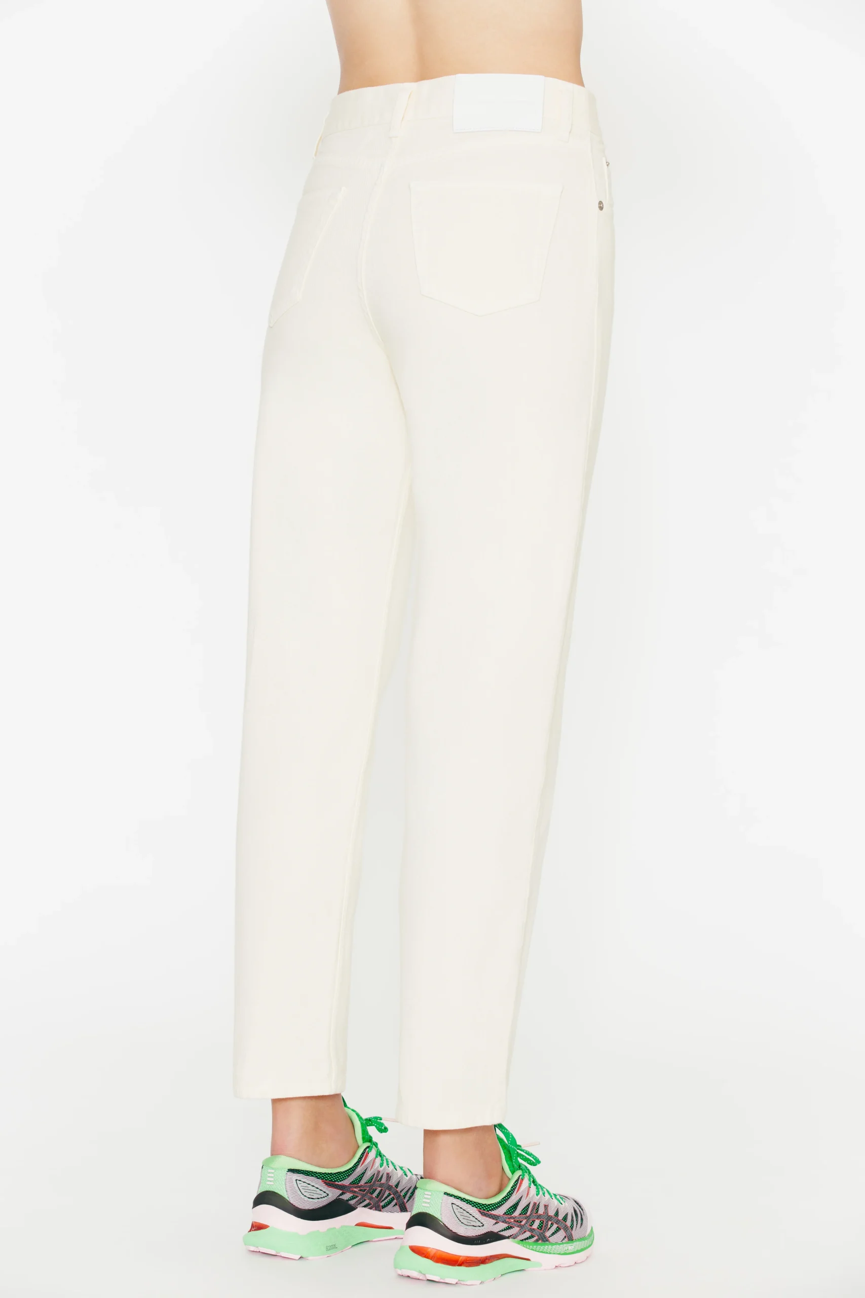 Jean taille haute en denim blanc cassé Surpiqûre contrastante Jacron de cuir blanc Coupe droite 100% Coton