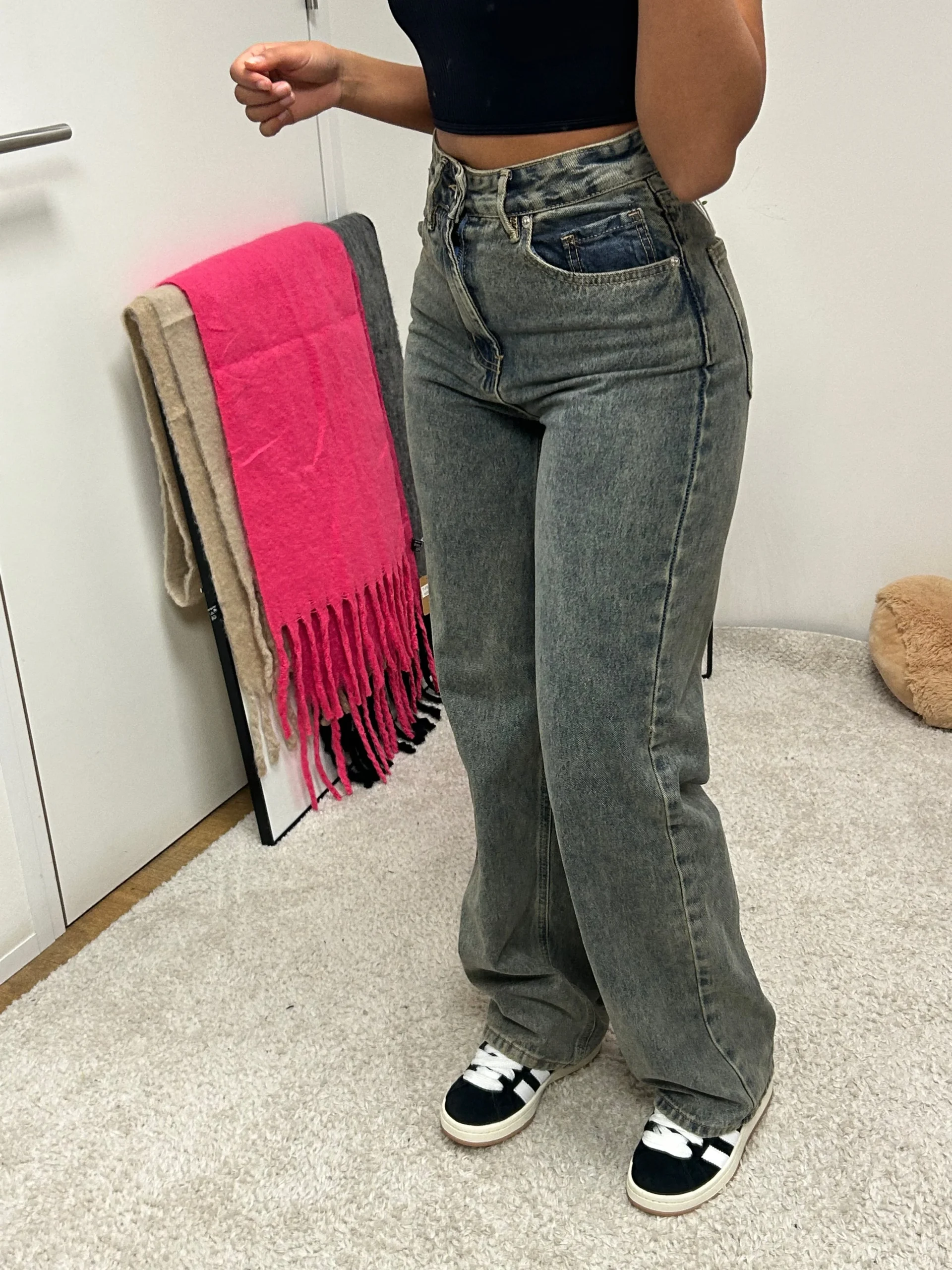 Jeans taille haute , matière non elasthane mannequin : mesure 1m65 taille : porte une taille 42 COMPOSITIONS: 100% COTTON