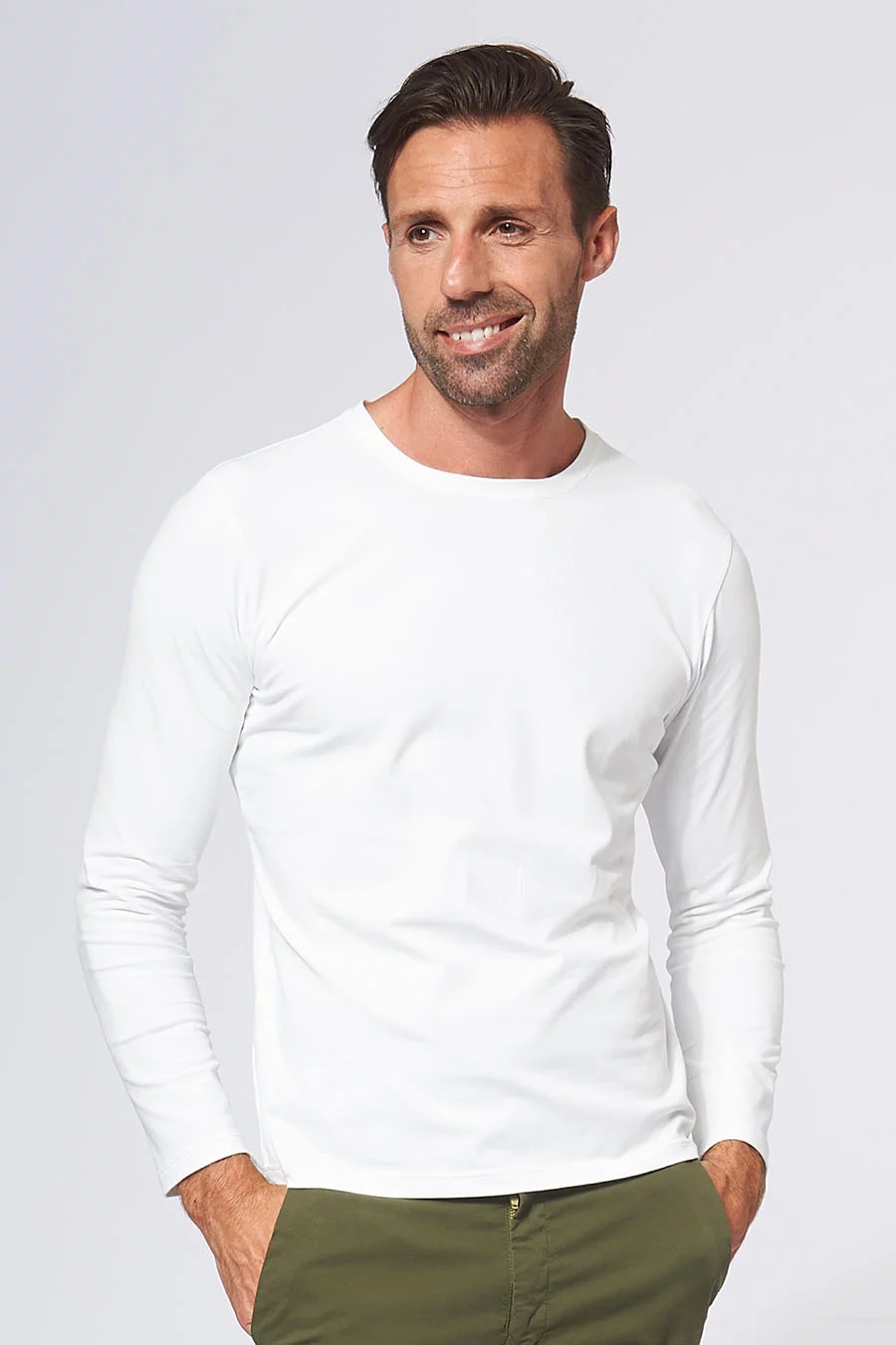 Coupe ajustée à manches longues Encolure ronde avec bande d’encolure et bande de propreté Finition double aiguille bas de manche et de tee-shirt Composition : 185 g/m2 96% Coton bio, 4% Elasthanne Jersey