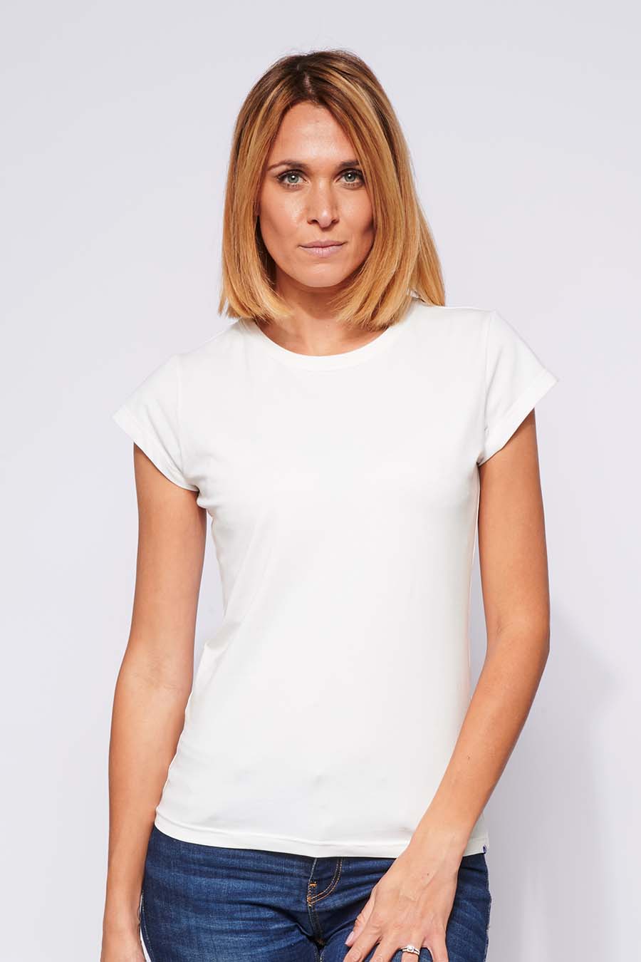 Coupe ajustée à manches courtes Encolure ronde avec colletage Finition double aiguille bas de manche et de tee-shirt Composition : 185 g/m2 96% Coton bio, 4% Elasthanne Jersey