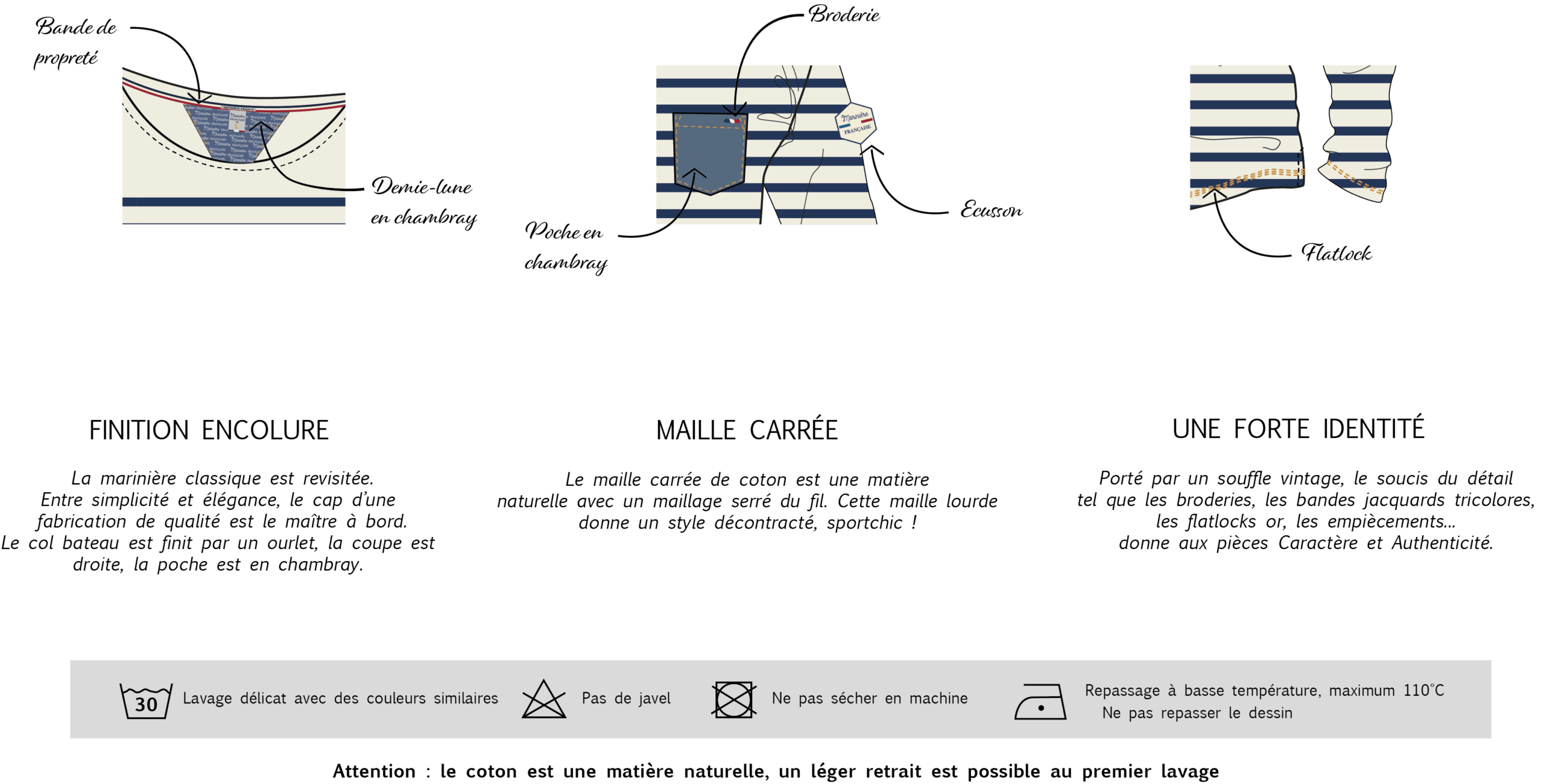 Et pour une qualité irréprochable, la marinière JEAN est fabriquée au Portugal, dans des ateliers reconnus pour leur savoir-faire.