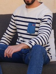 Marinière JEAN homme – Coton 100 %, détail chambray