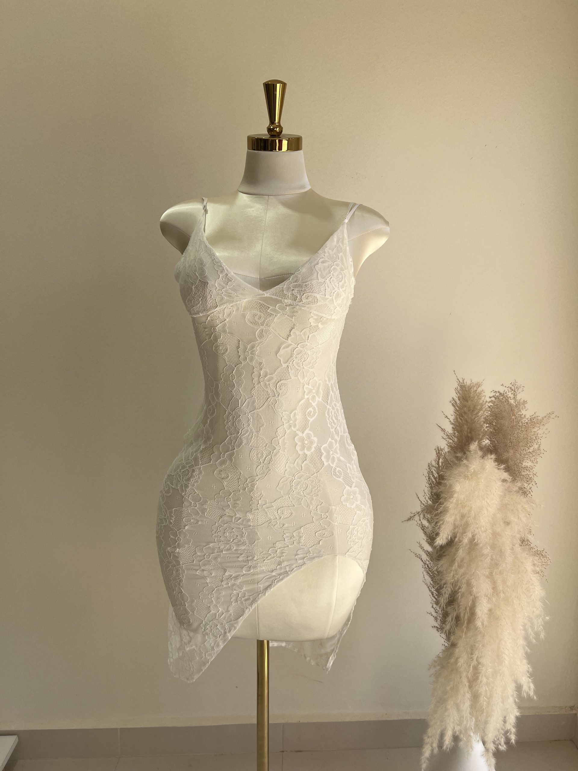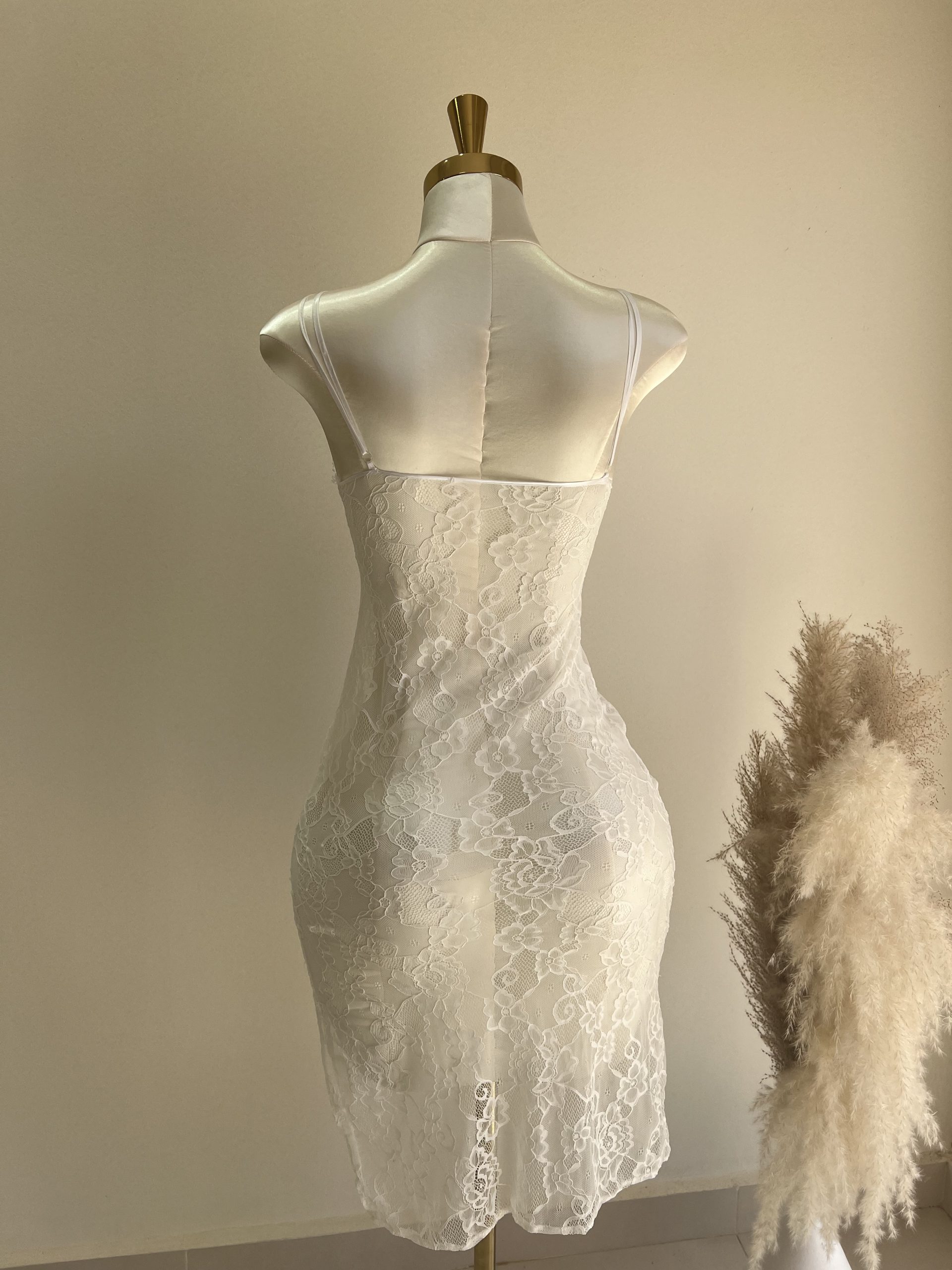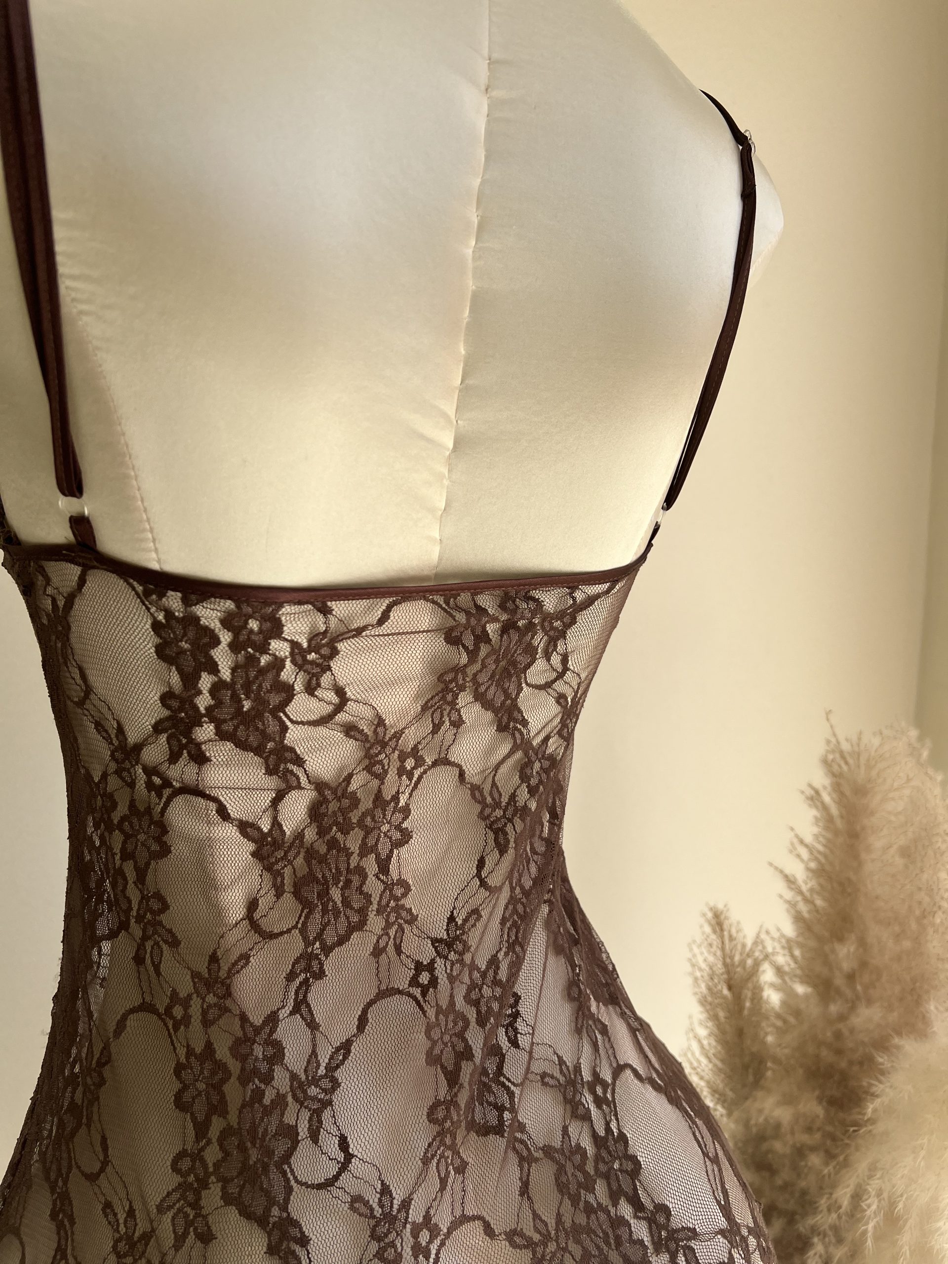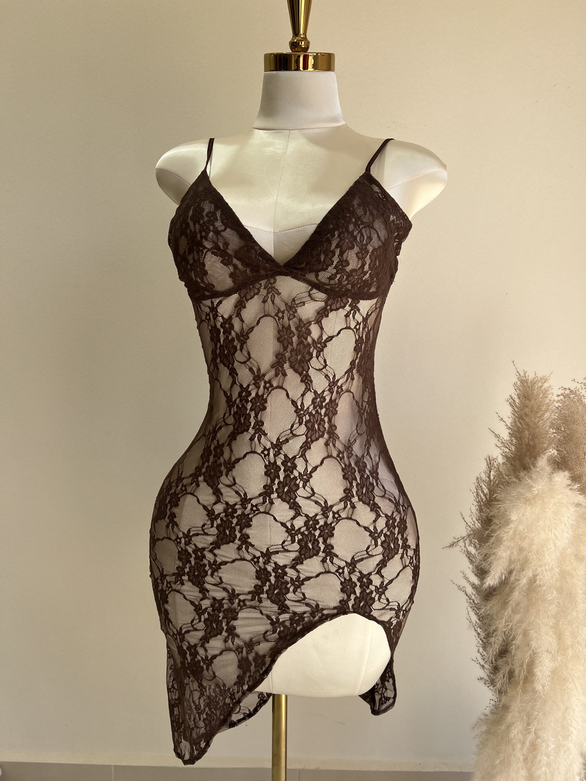 Nuisette en dentelle fine et extensible avec une fente. COULEURS : Fuchsia / Vert / Bleu roi / Marron / Blanc MATÉRIAU : Dentelle TAILLES DISPONIBLES : T1(SM) 36-38, T2(LXL) 40-42, T3 (XXl) 44