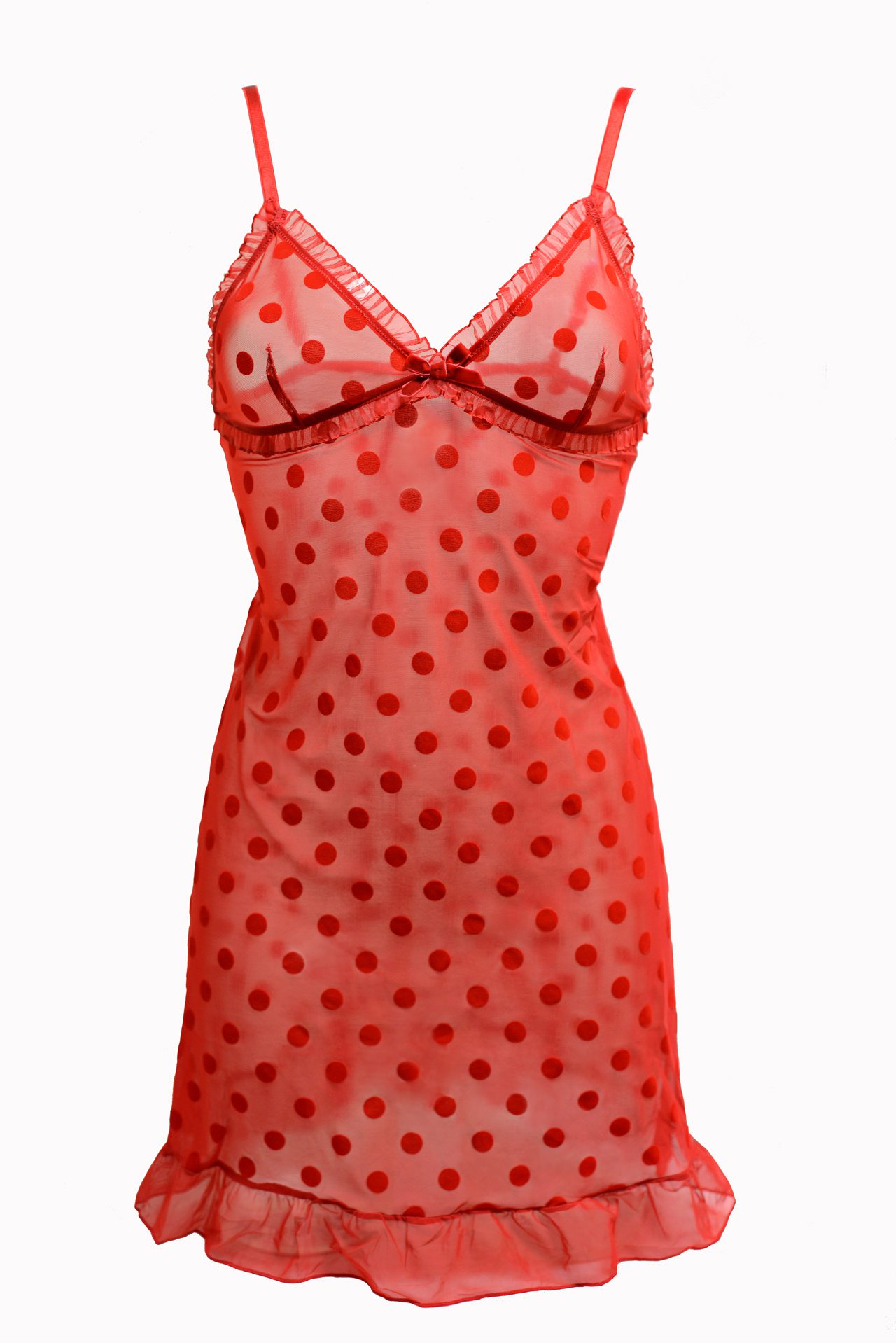 Nuisette en tulle à pois floqué en velours, rehaussée d’un ruban froncé. Goutte d’eau pour plus de séduction. Bonnet forme triangle. Bretelles réglables.