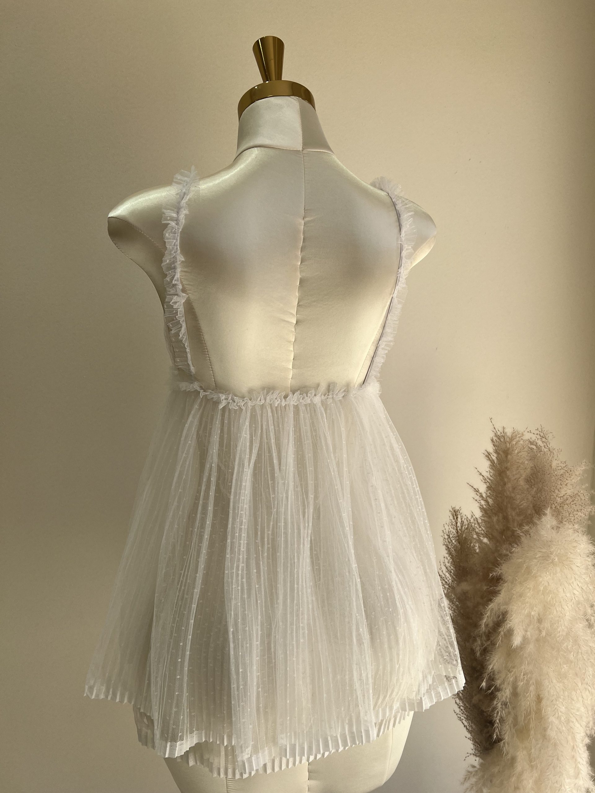 Nuisette Princesse en tulle doux. COULEURS : Blanc / Rose MATÉRIAU : Tulle TAILLES DISPONIBLES : T1(SM) 36-38, T2(LXL) 40-42, T3 (XXl) 44-46