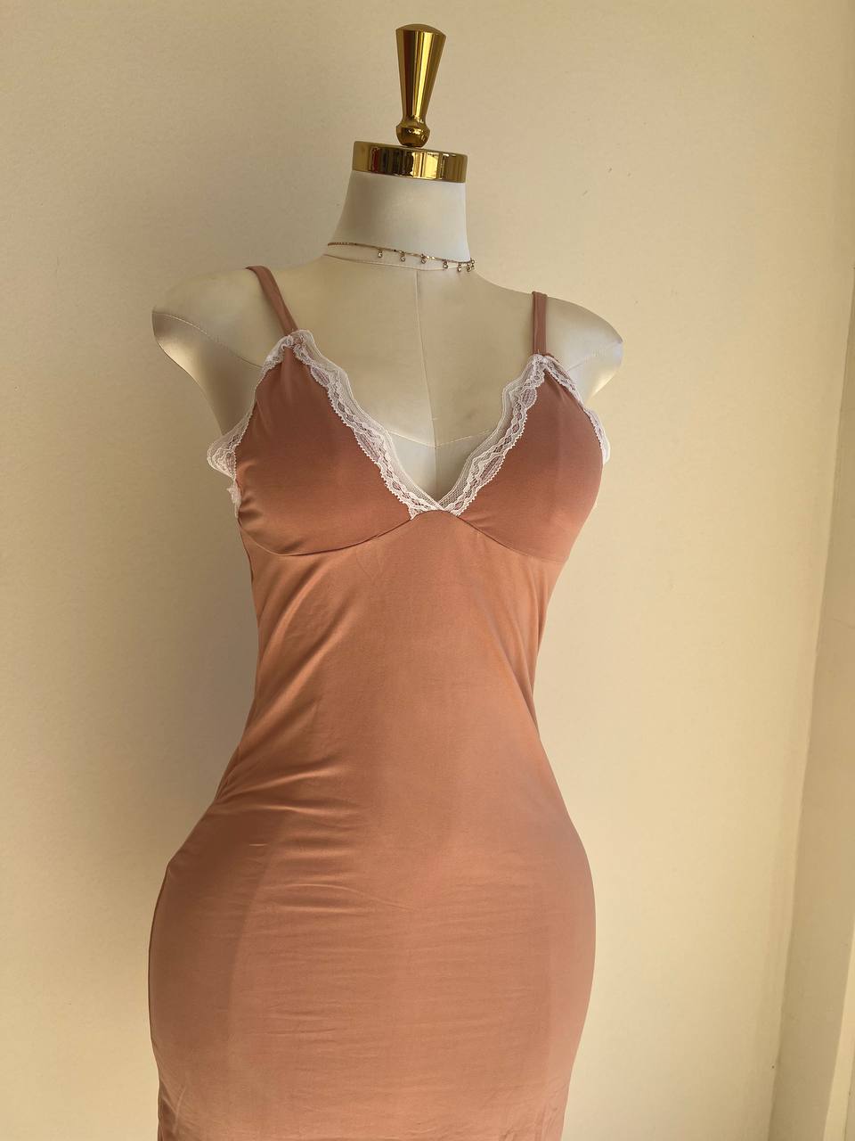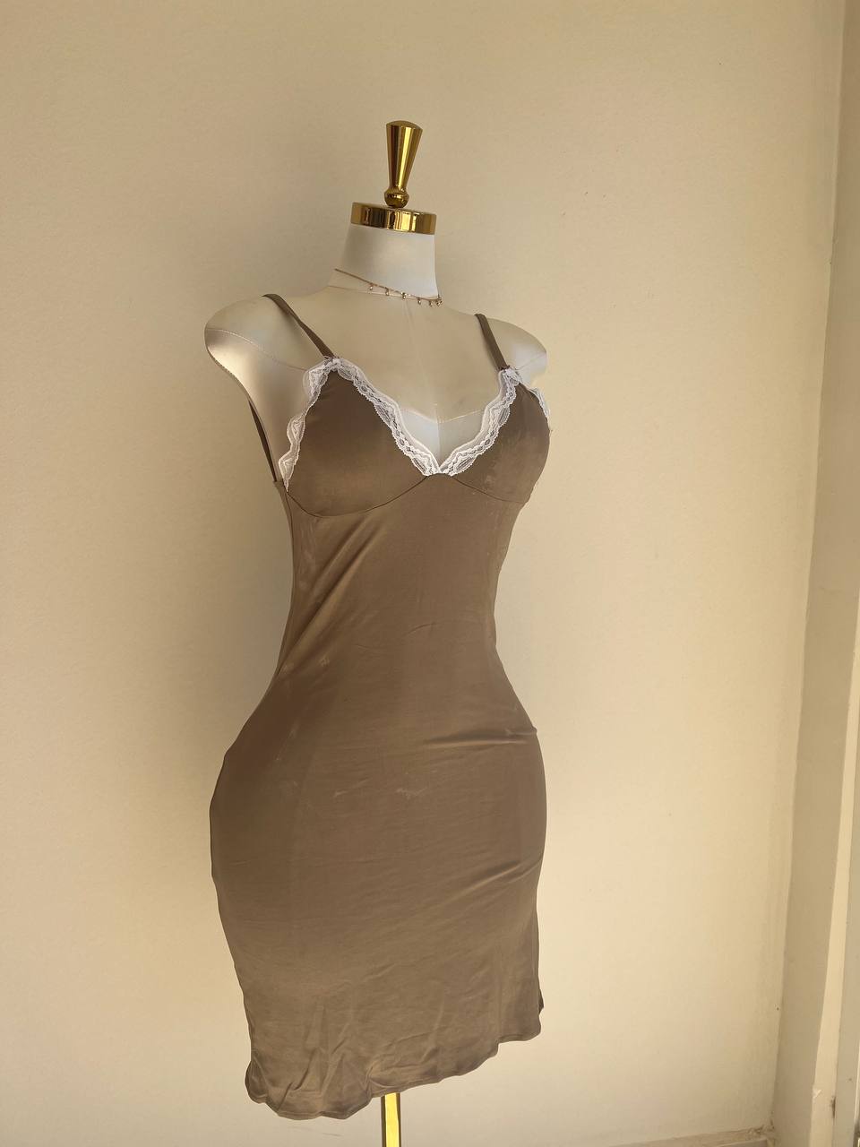 Nuisette en tissu coton bordée de dentelle. COULEURS : Lilas / Bordeau / Saumon / Mocca MATÉRIAU : Coton TAILLES DISPONIBLES : T1(SM) 36-38, T2(LXL) 40-42, T3 (XXl) 44