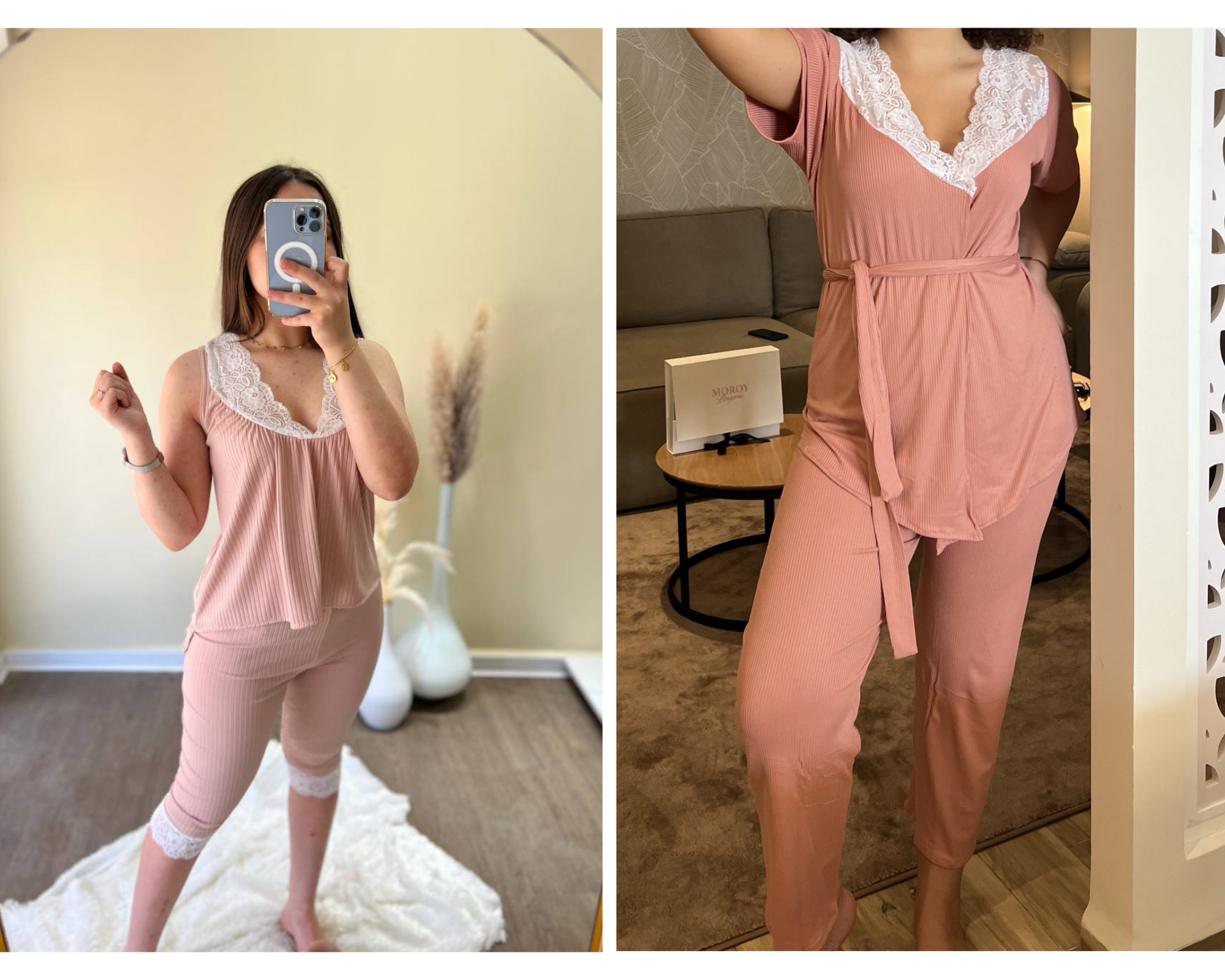 Pack Lily : Ensemble 2 pièces Lily – kimono demie manches et pantalon + Bustier pantacourt Lily – bustier sans manches et pantacourt. COULEURS : Rose MATÉRIAU : Coton Lycra TAILLES DISPONIBLES : T1 (SM), T2 (LXL), T3(XXL)