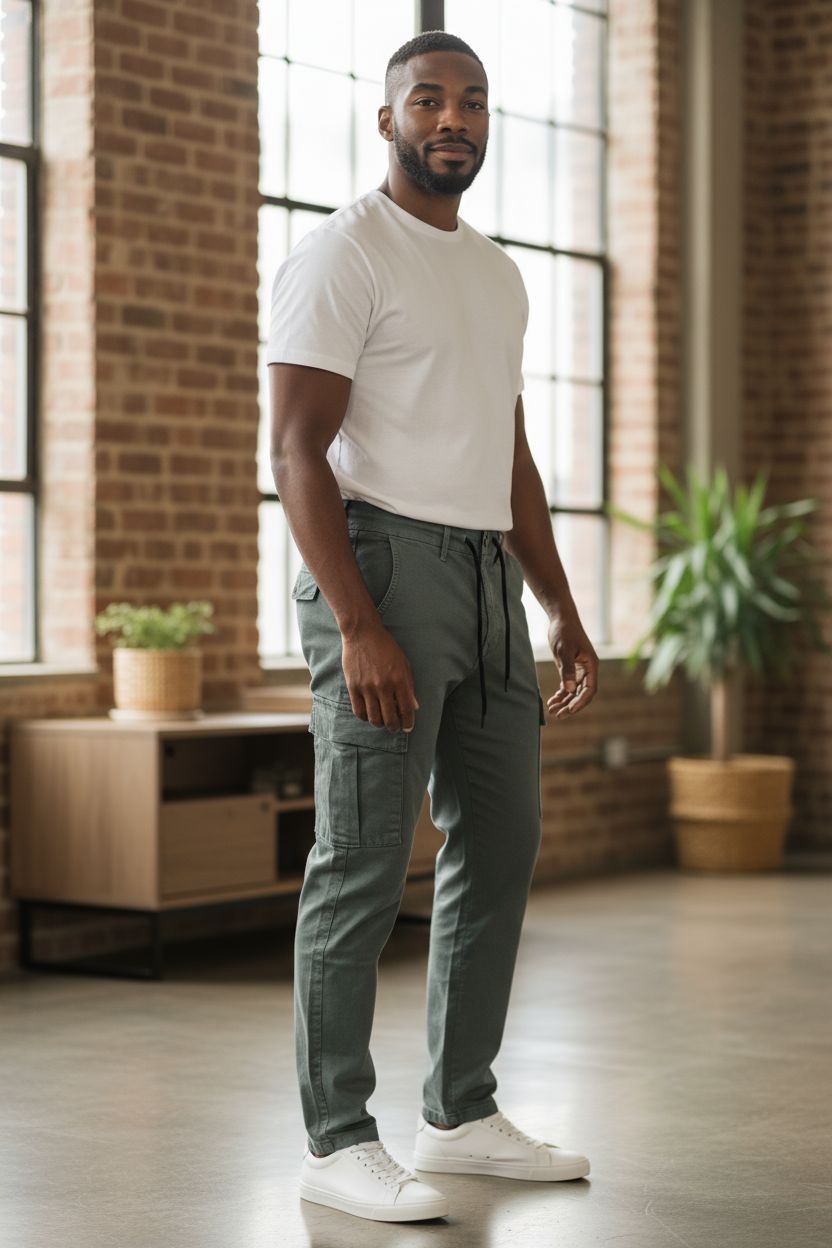 Le design cargo revisité lui donne une silhouette moderne et urbaine, tandis que les poches pratiques ajoutent une dimension fonctionnelle sans alourdir le style.